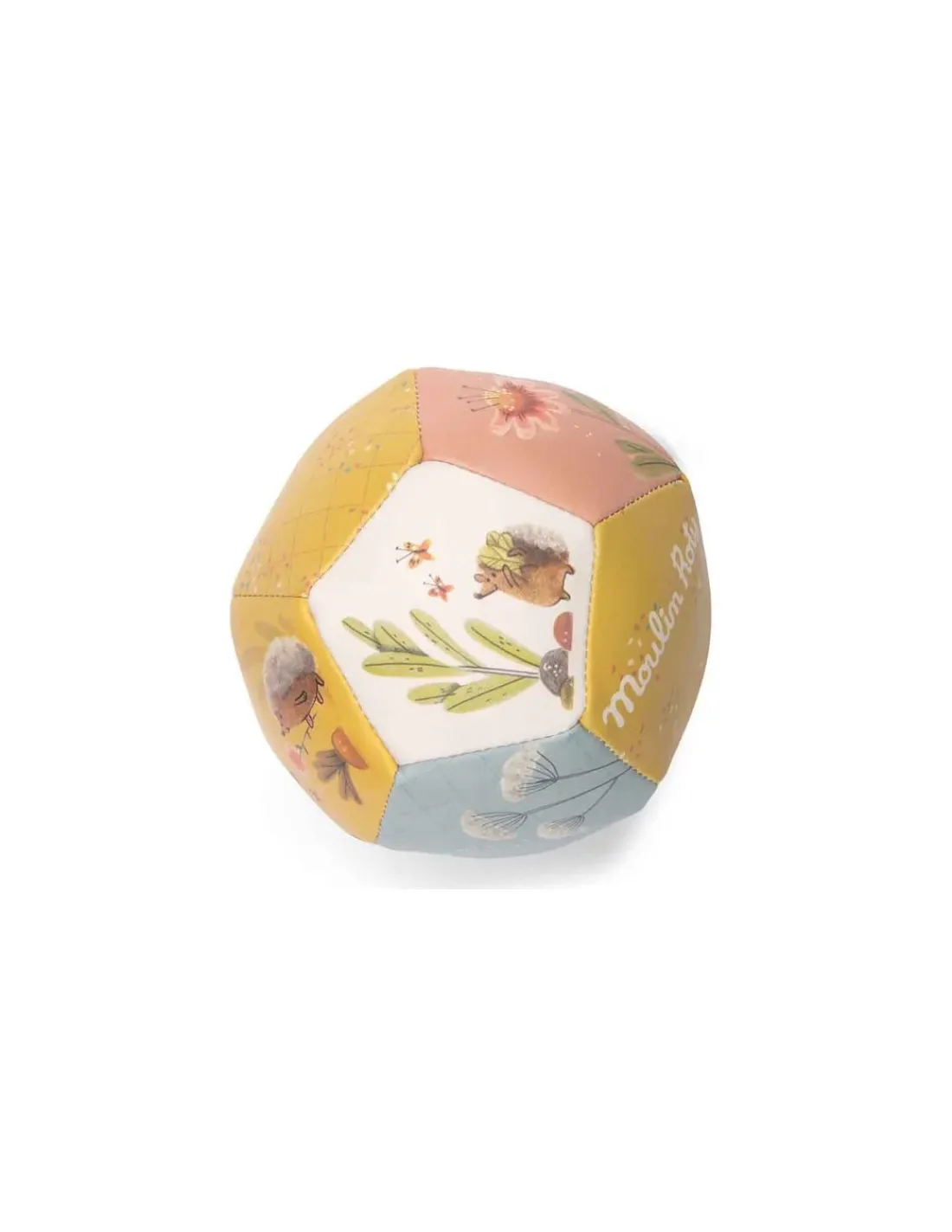 Découvrez la balle souple de la collection Trois Petits Lapins de Moulin Roty, un petit ballon coloré tout léger pour amuser bébé. Une balle souple en vinyle pour jouer à l’intérieur comme à l’extérieur de la maison, avec des faces colorés et illustrées avec les personnages de la collection.
