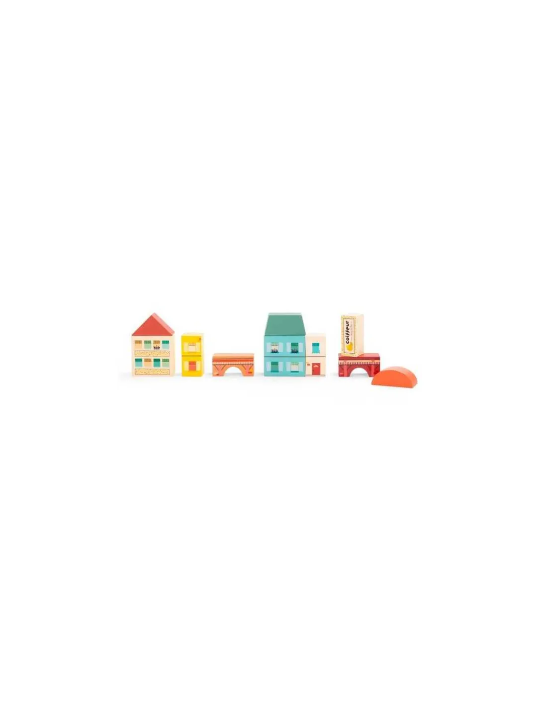 Découvrez les blocs de construction Village de la collection Avenue du Moulin de Moulin Roty, un coffret de jeu de construction composé de 34 pièces permettant aux enfants, dès 2 ans, de laisser libre cours à leur créativité architecturale.