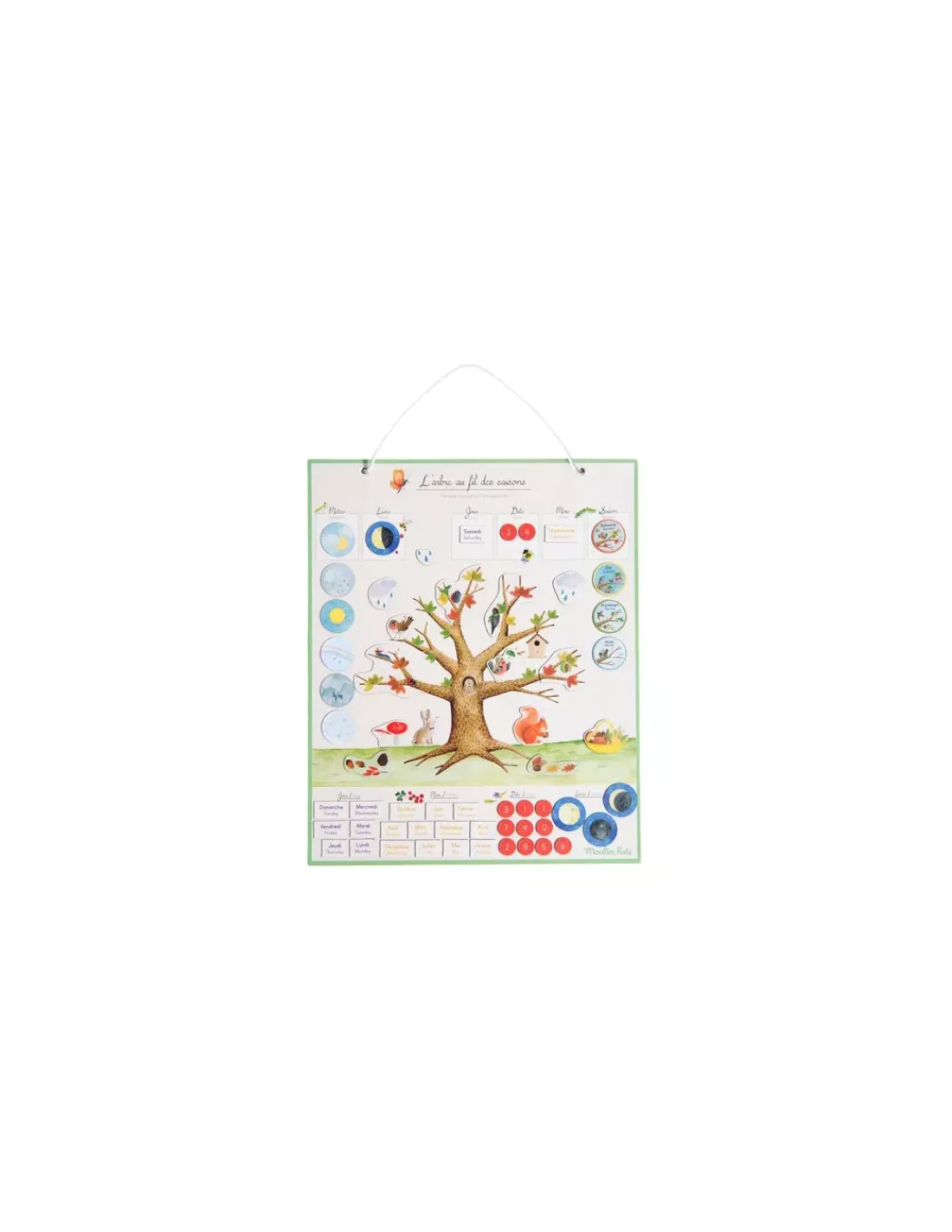 Découvrez le calendrier magnétique des saisons de la collection Le jardin du moulin de Moulin Roty, un calendrier à partir de 3 ans pour observer les changements de la nature et habiller son arbre en fonction des saisons avec 108 magnets illustrés.