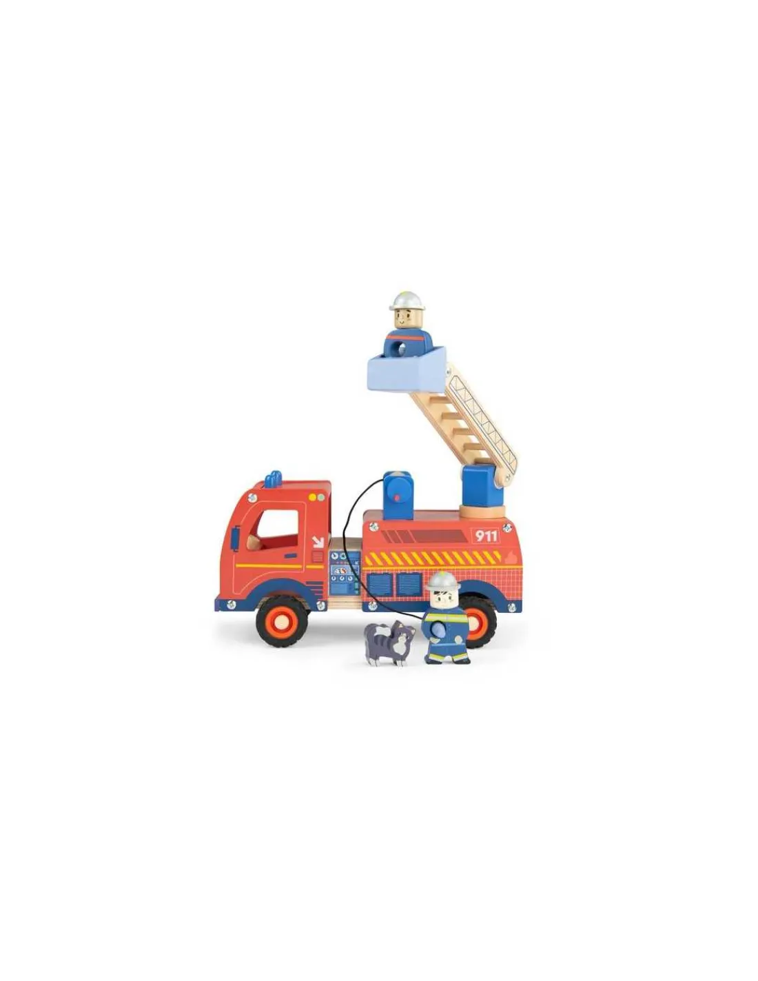 Lancez la sirène, les pompiers partent en intervention avec ce magnifique camion en bois ! Grâce à la grande échelle, la lance à eau et aux petits accessoires, les petits s’inventeront des histoires inoubliables pour des heures de jeu en perspective.
