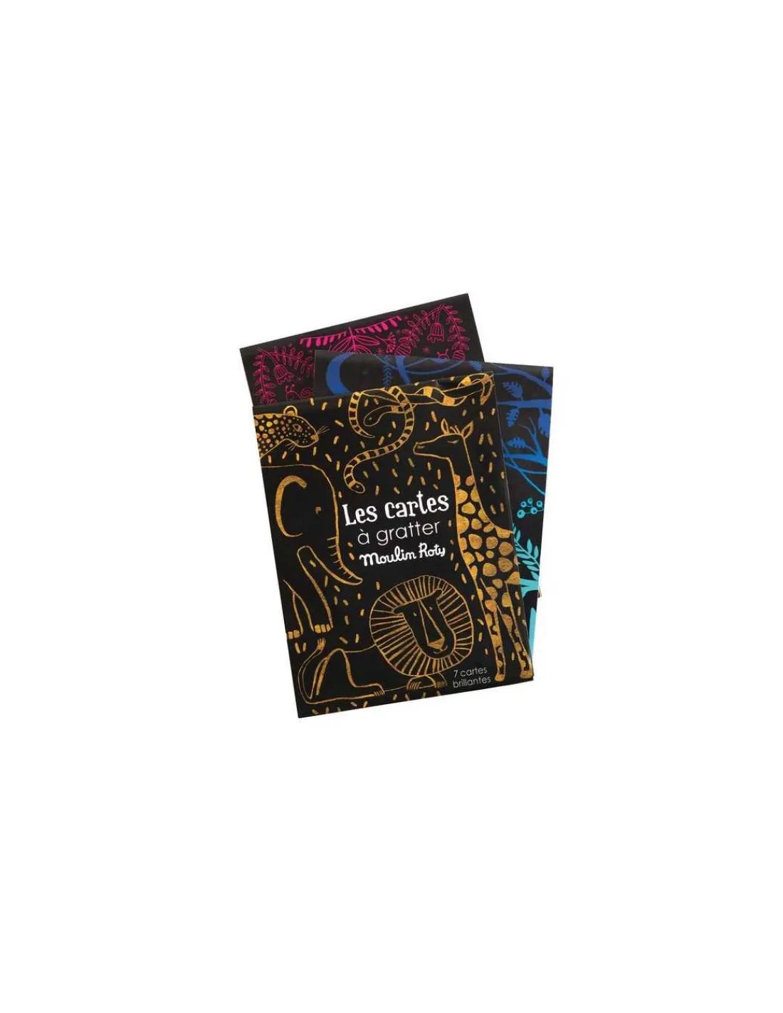 Découvrez les cartes à gratter or et argent de Moulin Roty, une activité créative avec 7 feuilles à gratter au fond brillant, or et argent pour les enfants à partir de 5 ans.