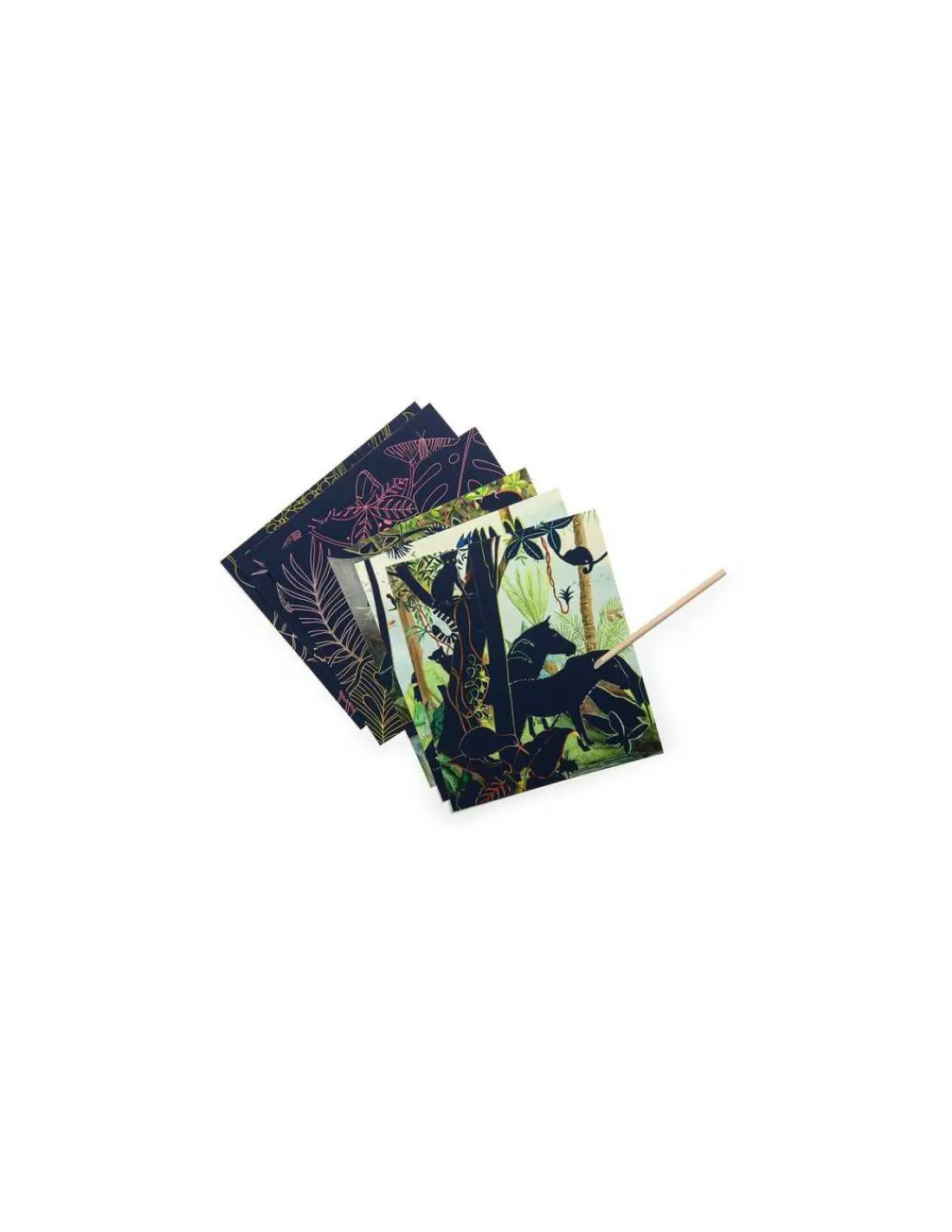 Découvrez les Cartes à gratter de la collection Tout autour du monde de Moulin Roty, une activité créative et ludique pour les enfants à partir de 5 ans qui contient 6 cartes à gratter avec modèle et un bâtonnet.
