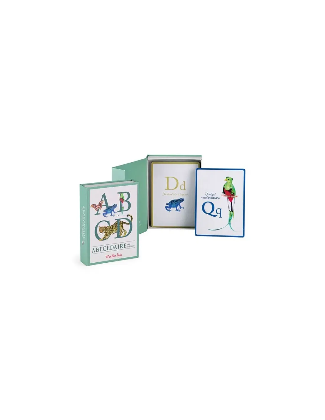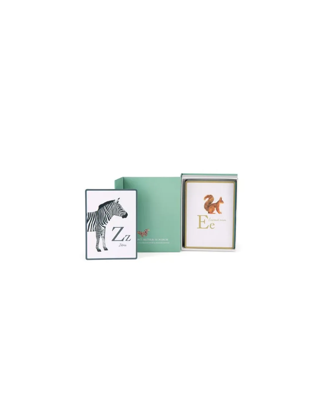 Découvrez les Cartes Abécédaire de la collection Tout autour du monde de Moulin Roty, 26 cartes pour initier votre enfant aux lettres de l’alphabet.