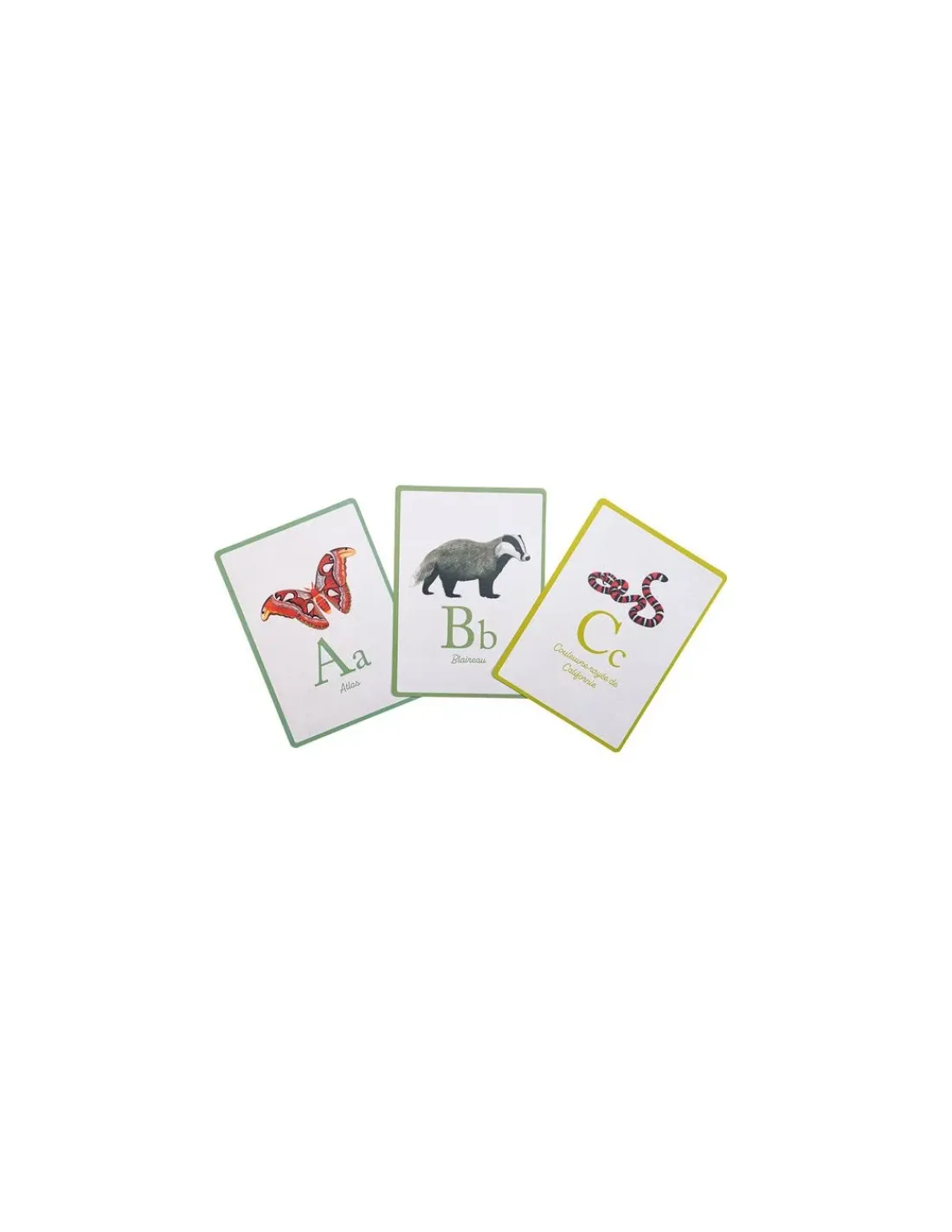 A comme Atlas, B comme Blaireau…Découvrez les 26 lettres de l’alphabet tout en apprenant le nom des animaux du monde grâce à ces cartes joliment illustrées. Une manière ludique de faire prendre conscience aux enfants de la diversité de notre planète.