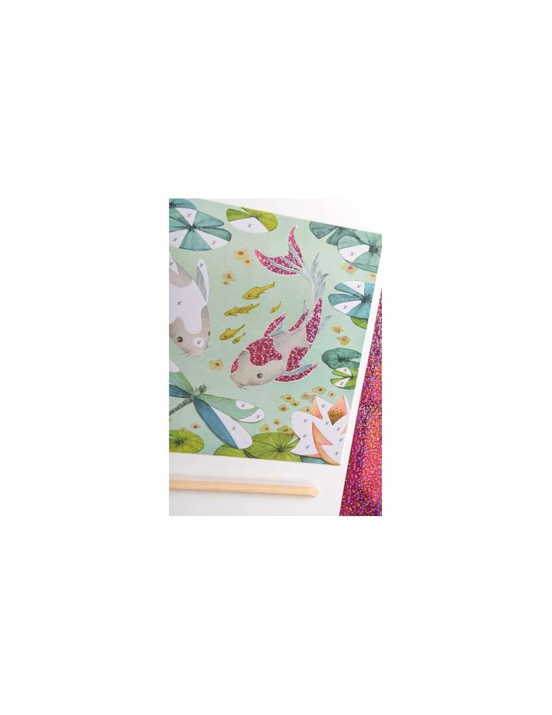 La pochette comprend 6 cartes (oiseaux, papillons, renards…), 10 feuilles fantastiques et 1 bâtonnet.