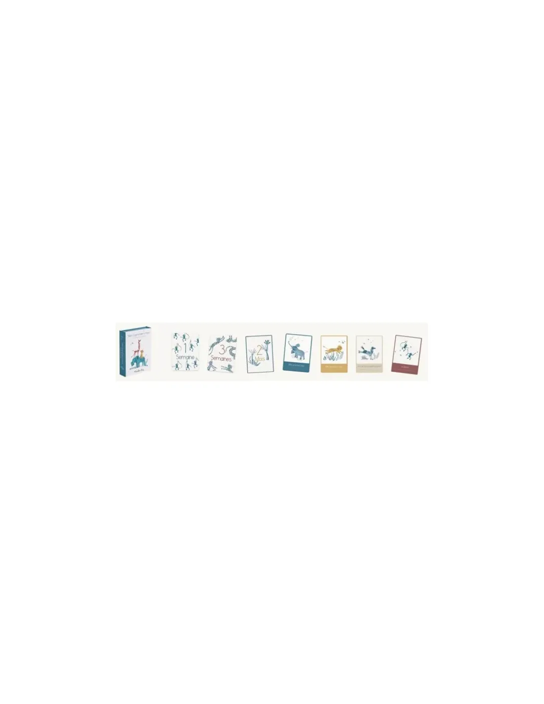 Découvrez les cartes Mes 12 premiers mois de la collection Sous mon baobab de Moulin Roty, un coffret de 30 cartes pour prendre en photo bébé, et retracer les grandes étapes de ses 12 premiers mois. Sur chacune d’elle, un côté thématique illustré des adorables animaux de la collection et l’autre pour coller la photo et y inscrire quelques souvenirs.