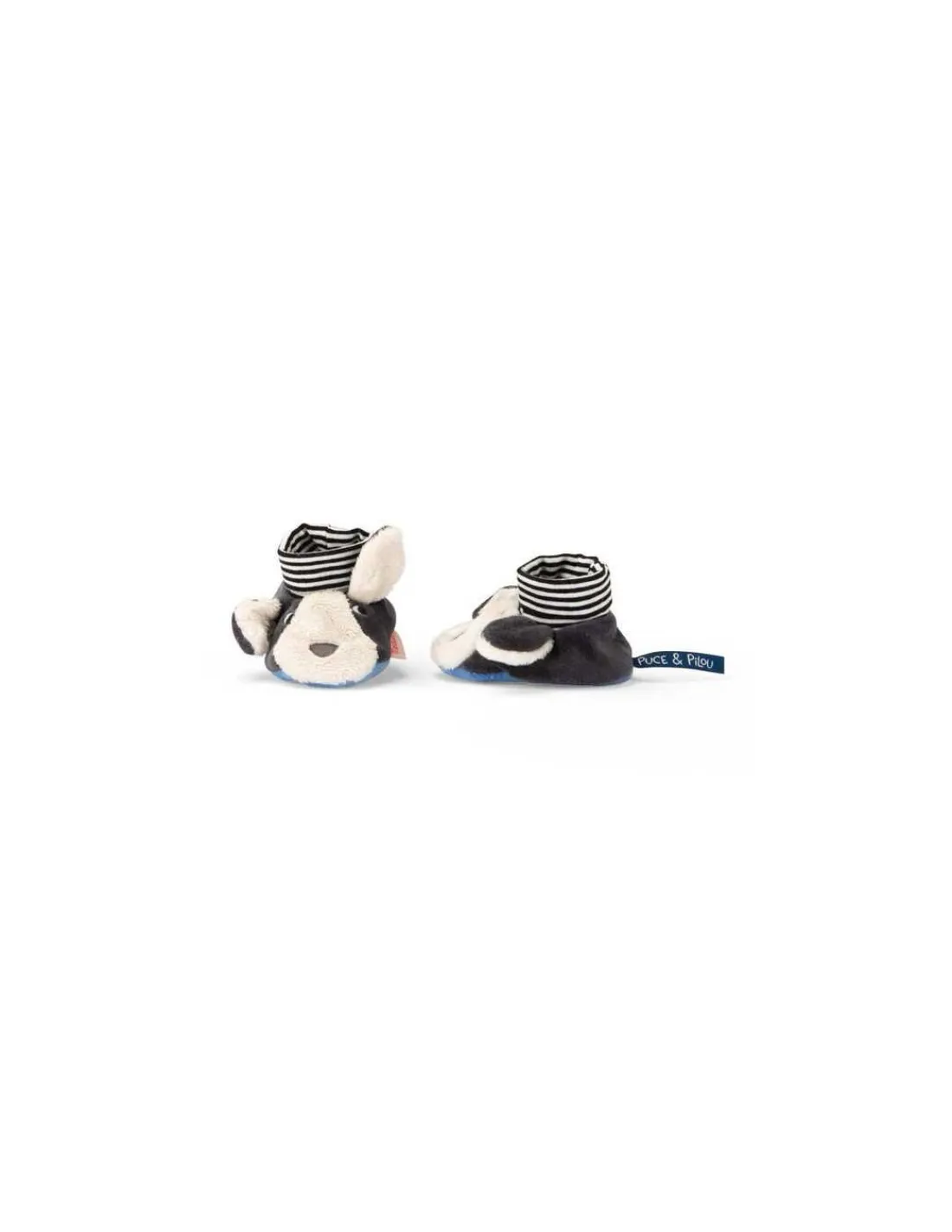 Découvrez les chaussons chien Puce bleu de la Puce & Pilou de Moulin Roty, de petits chaussons en tissu qui seront parfaits aux pieds de votre bébé, une idée originale de cadeau de naissance. Des petits chiens… sur les petons de bébé!
