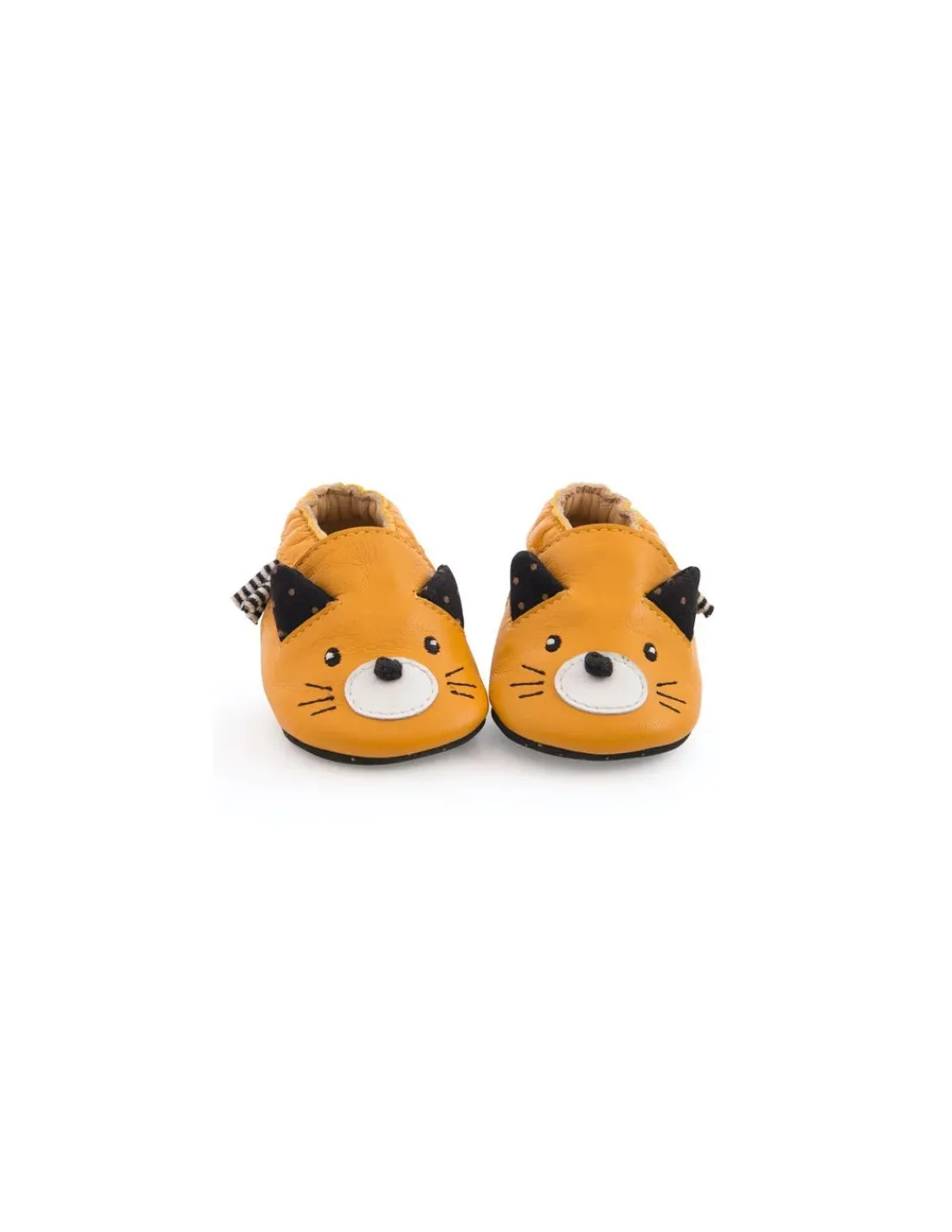 Découvrez les chaussons en cuir chat moutarde taille 18-24 mois de la collection Les moustaches de Moulin Roty, des chaussons 100% cuir, souples, doux et confortables, parfaits pour protéger les petons des enfants de 18 à 24 mois.