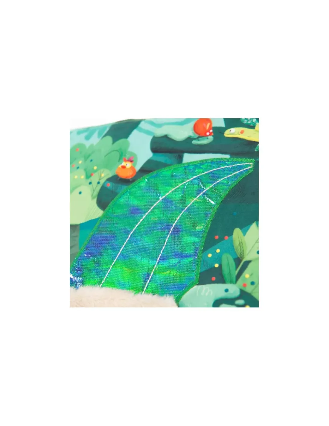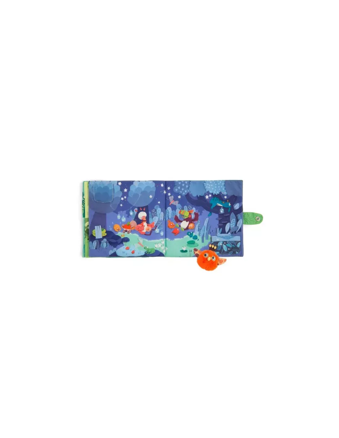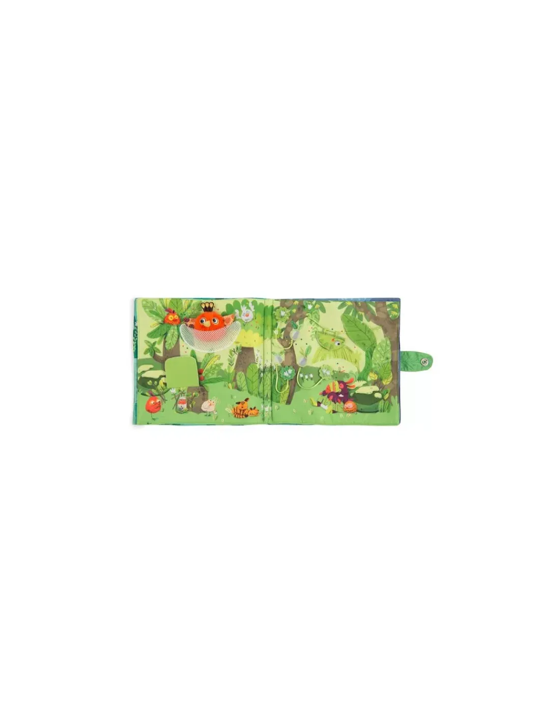 Livre en tissu 6 pages avec un petit poussin chantant à accompagner dans toutes les activités de la jungle! Jeux de matières à découvrir et éléments à scratcher, il est idéal pour développer la motricité fine!