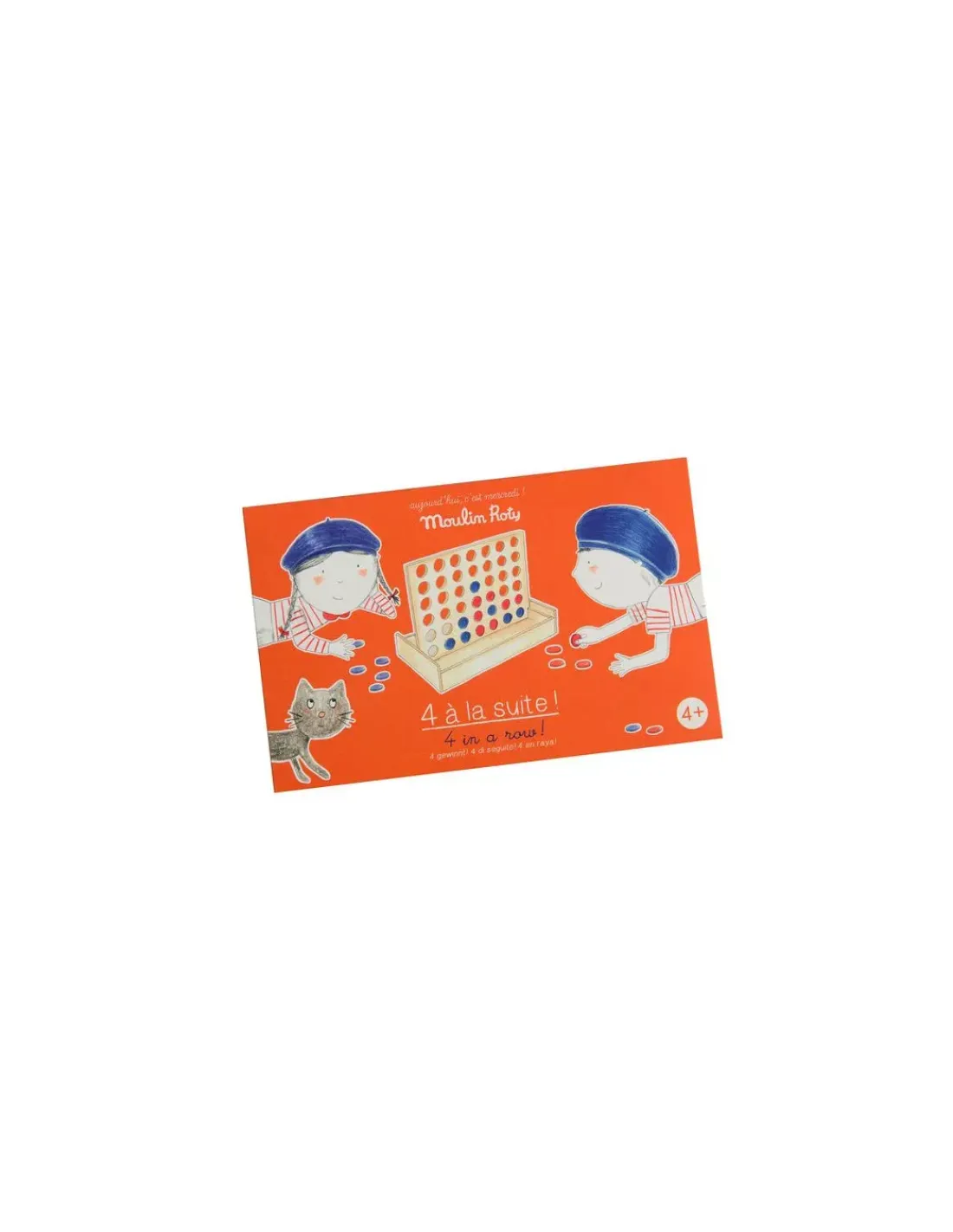 Découvrez le jeu de 4 à la suite de la collection Aujourd’hui c’est mercredi de Moulin Roty, un grand classique de notre enfance revisité tout en bois. 2 joueurs s’affrontent pour aligner en premier 4 points de sa couleur.