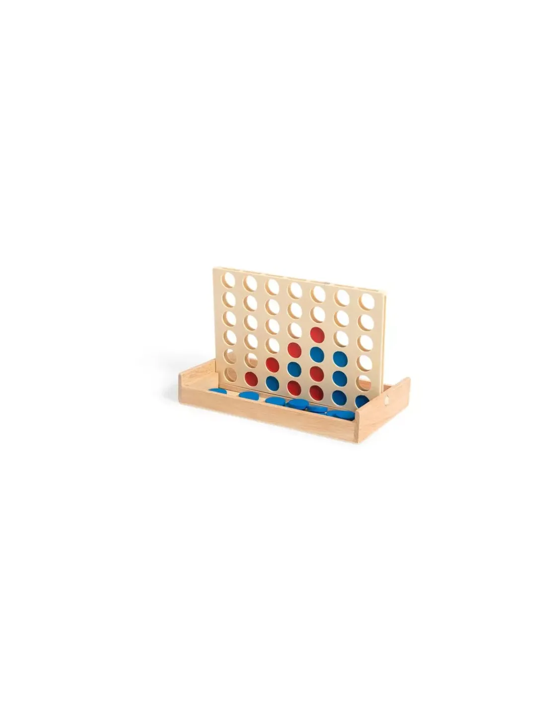 Un jeu de stratégie à emporter partout. Un plateau de jeu en bois facile à installer, et 42 pions pour jouer au 4 à la suite en voiture, ou à la maison! Le premier joueur à aligner 4 pions de la même couleur gagne la partie!