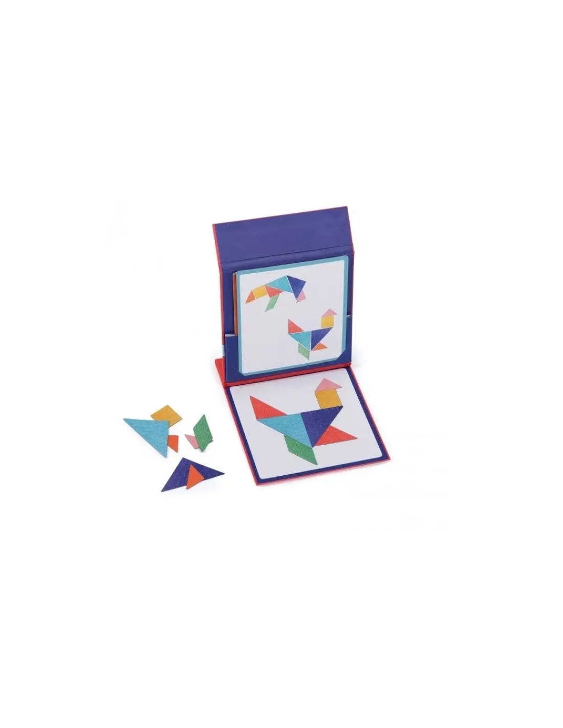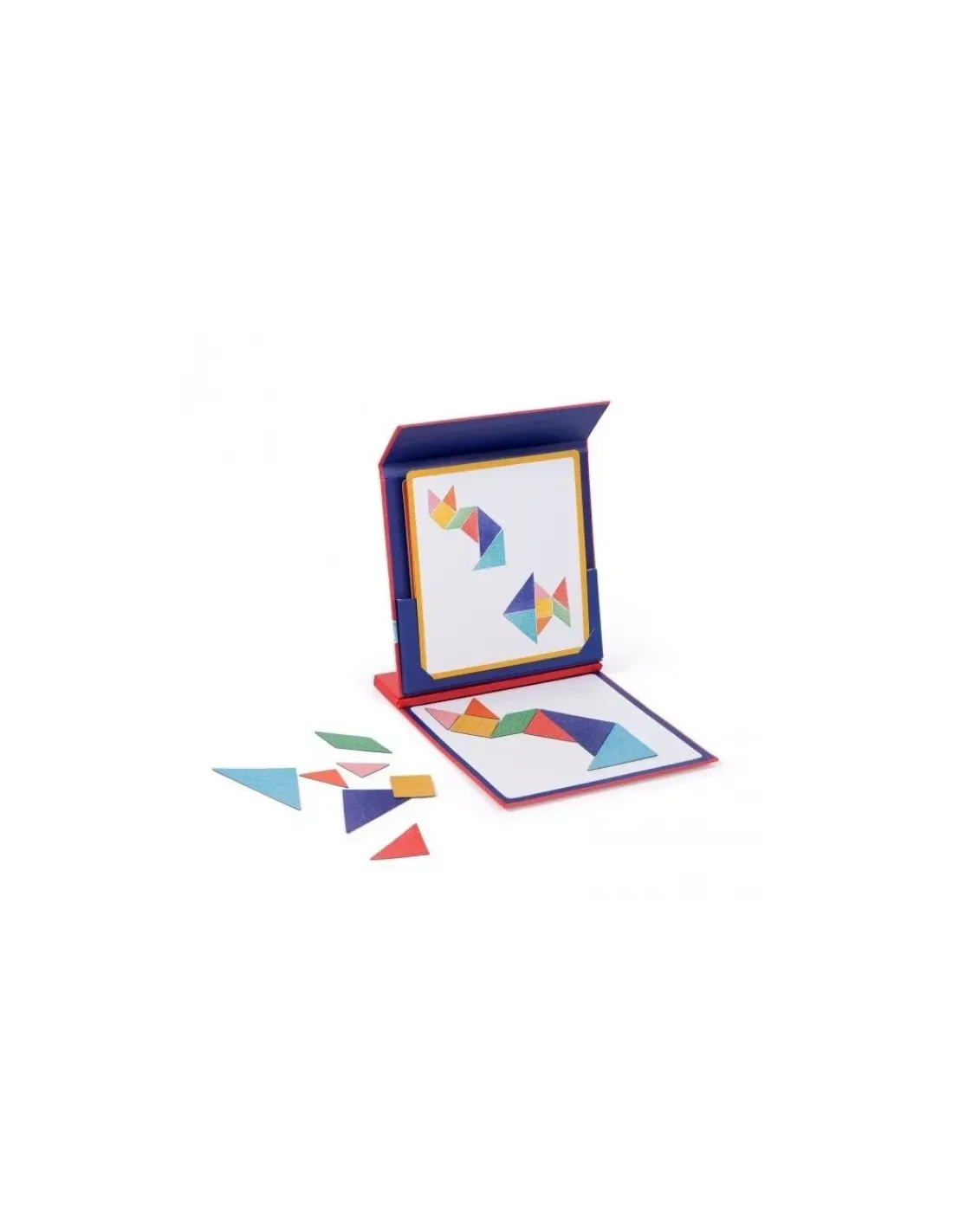 Un jeu de tangram magnétique qui développe la logique et la réflexion. Sur la planche magnétique, tentez de reproduire les figures représentées sur les 9 cartes recto-verso en assemblant les pièces du tangram aux différentes formes.