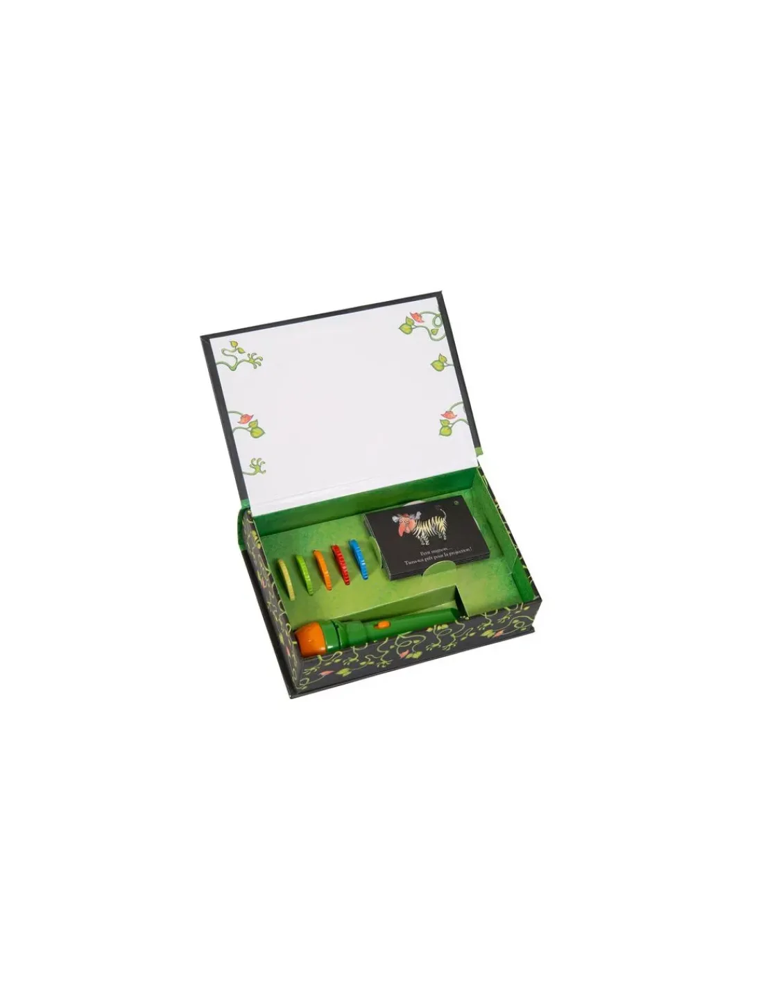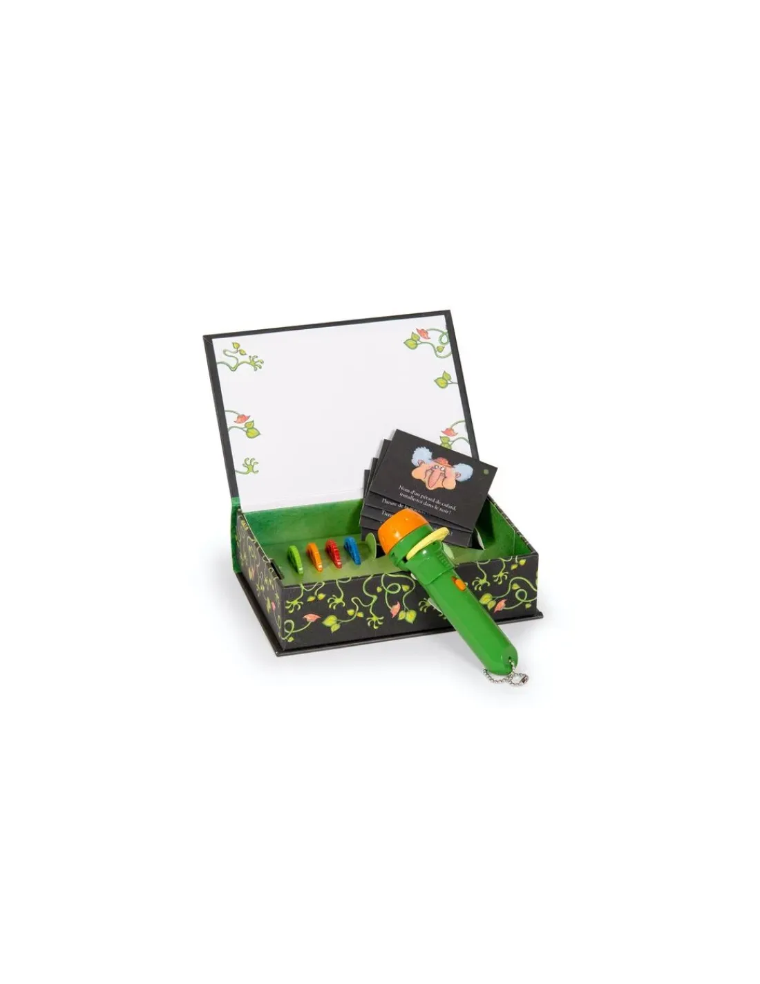 Un livre magique que l’on ouvre comme une boîte à trésors, qui renferme précieusement une lampe à projeter, 5 disques et 5 adorables invitations pour projeter de belles histoires sur son écran intégré. Grâce à ce joli cadeau, votre enfant pourra découvrir les aventures de Cornebidouille, la sorcière de l’école des loisirs crée par Magali Bonniol et Pierre Bertrand.
