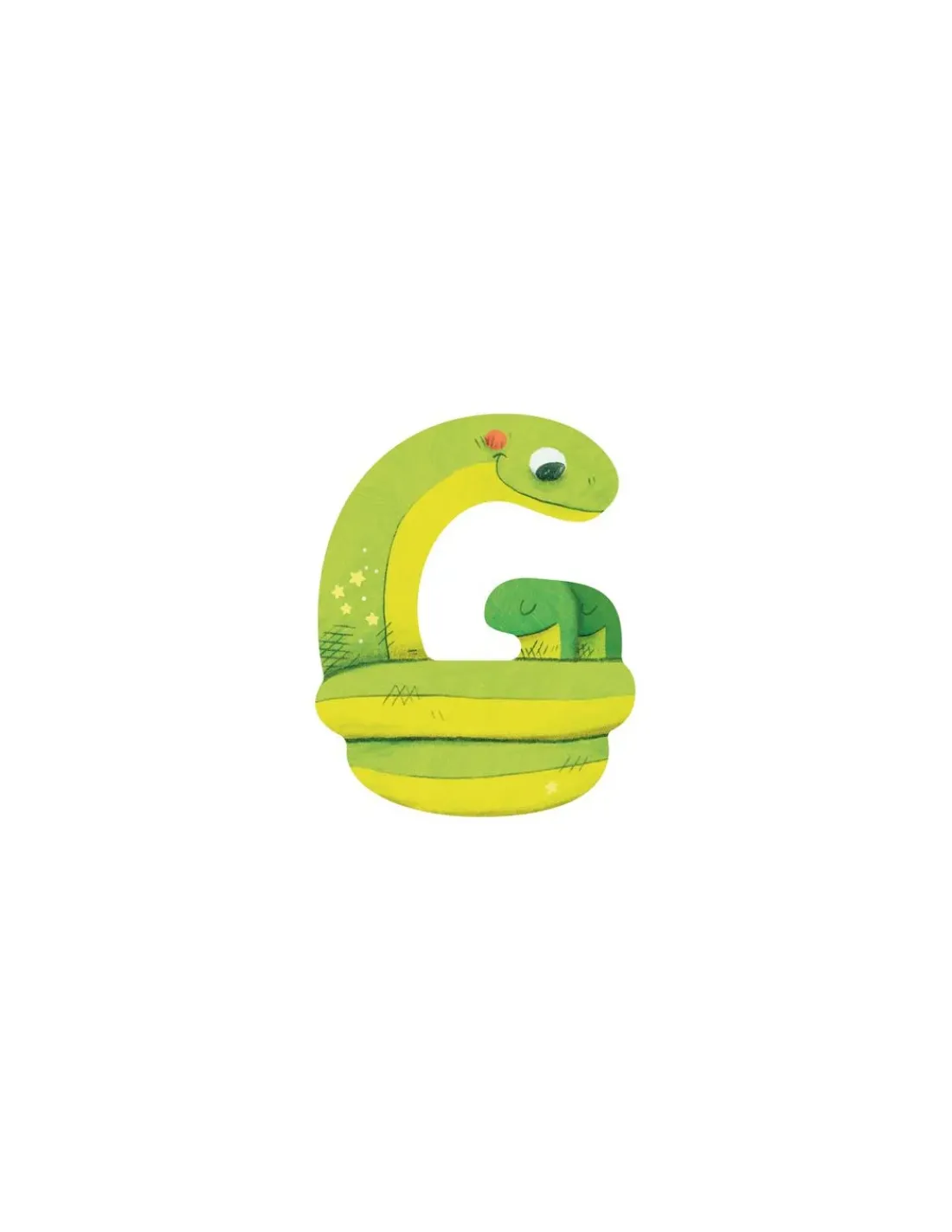 Découvrez la lettre G en bois de Moulin Roty, une belle lettre en bois décorative pour écrire le prénom de votre enfant. Une lettre illustrée avec un serpent et ses petits pour composer votre prénom et placer ces lettres sur la porte de la chambre de votre enfant ou sur toute création personnalisée.