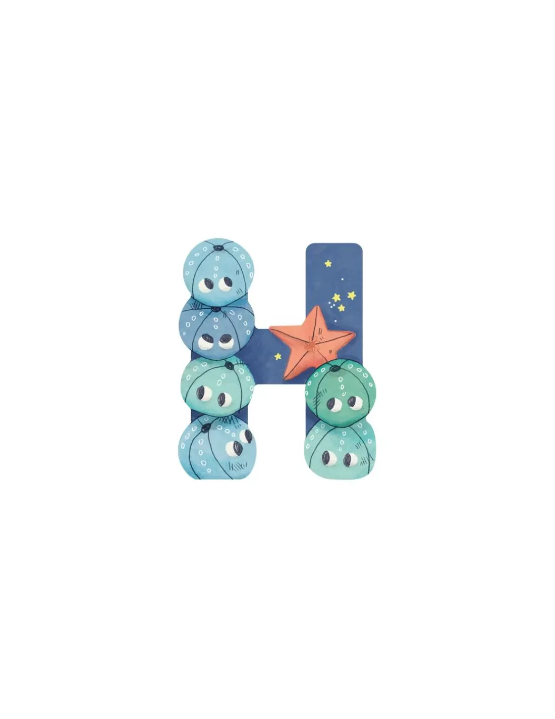 Découvrez la lettre H en bois de Moulin Roty, une belle lettre en bois décorative pour écrire le prénom de votre enfant. Une lettre illustrée avec des petits oursins pour composer votre prénom et placer ces lettres sur la porte de la chambre de votre enfant ou sur toute création personnalisée.
