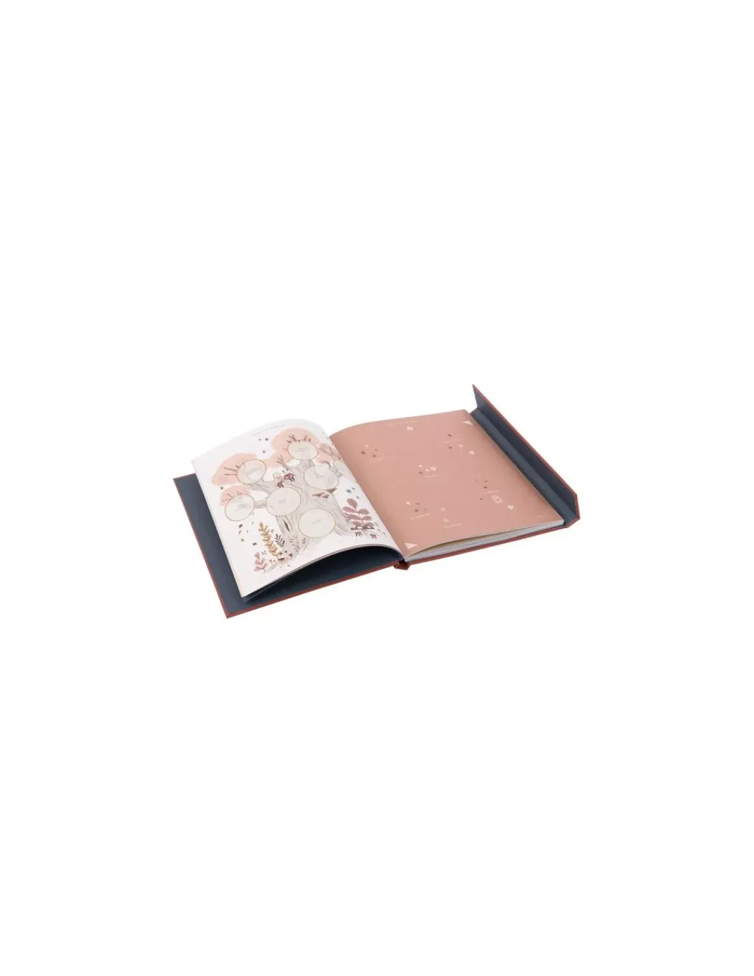 Un grand livre avec une fermeture aimantée. De son premier regard… à ses premières découvertes. Racontez et conservez les premiers souvenirs de votre enfant dans son livre naissance. Dans un univers tendre et illustré, ce livre à trésors accompagnera votre enfant jusqu’à ses 6 ans. Un recueil de mots et d’images, comme un doux secret à lui transmettre.