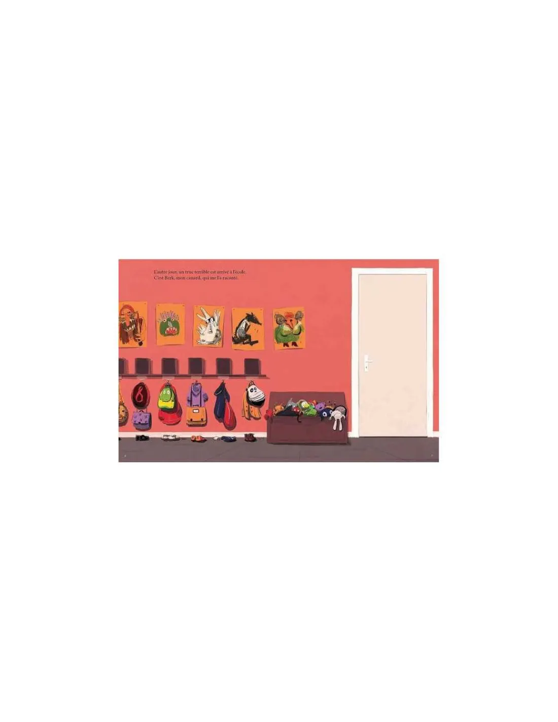L’autre jour, un truc terrible est arrivé dans mon école. C’est Berk mon canard qui me l’a raconté. J’avais oublié Berk dans la caisse à doudous et un croco-sac-à-dos était resté là aussi. « Allez viens, on va aller se balader dans la classe », a proposé Berk. Ils ont pris la lampe de la maîtresse car il faisait tout noir. Berk et Croco ont ensuite commencé à avoir la trouille avec ce Sprouitch Sprouitch qui les suivait partout.