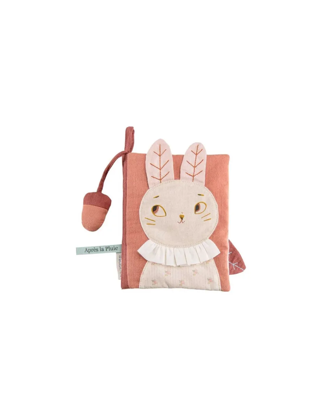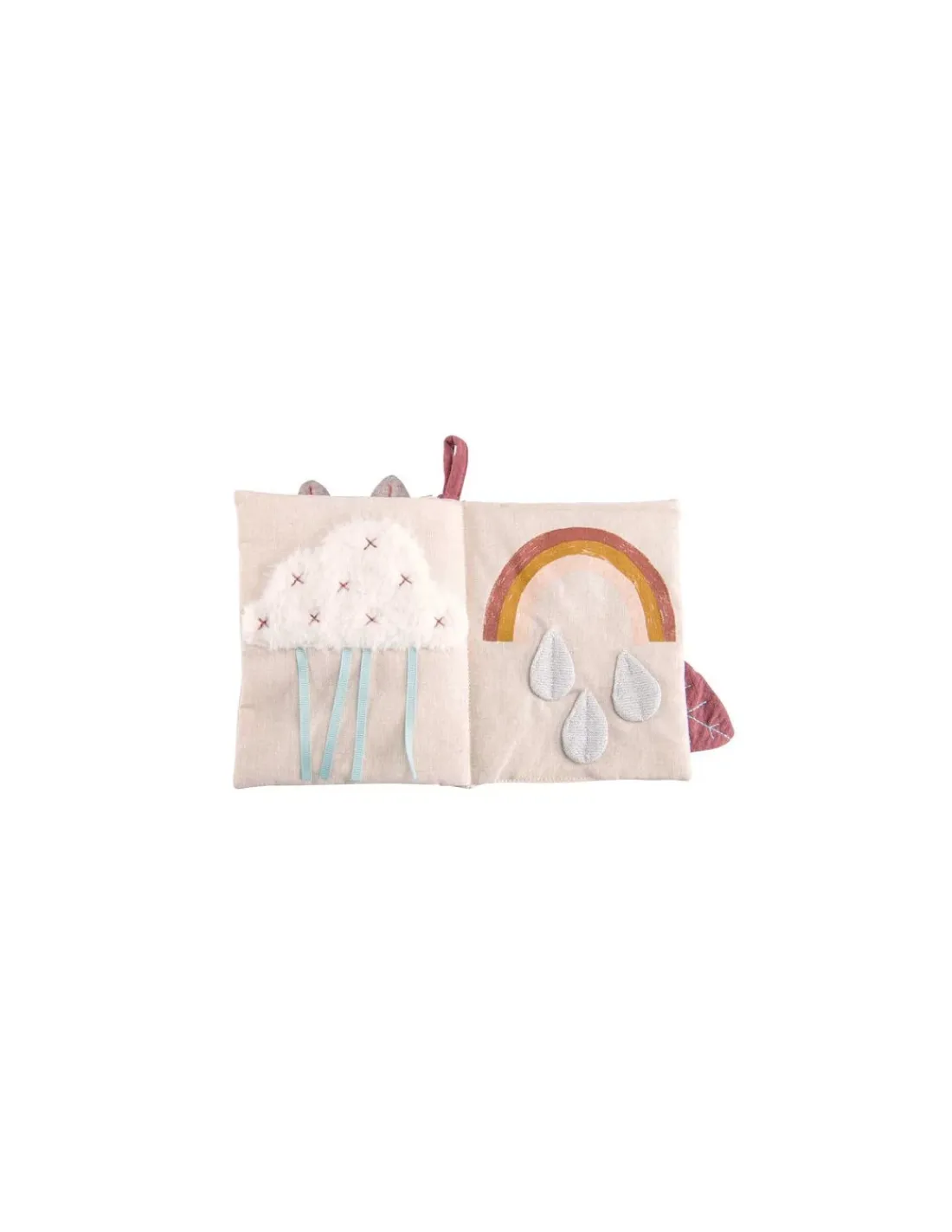 Découvrez le livre tissu d’activités de la collection Après la pluie de Moulin Roty, un livre en tissu à emporter partout avec un jeu de textures et de couleurs.