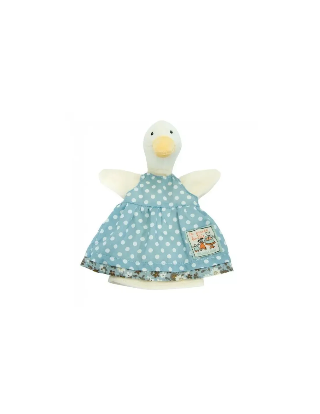 Découvrez la marionnette Jeanne la cane de la collection La grande famille de Moulin Roty, une marionnette à main idéal pour amuser votre bébé. Un doudou de canard avec une robe à pois a enfiler sur sa main pour raconter de jolies histoires.