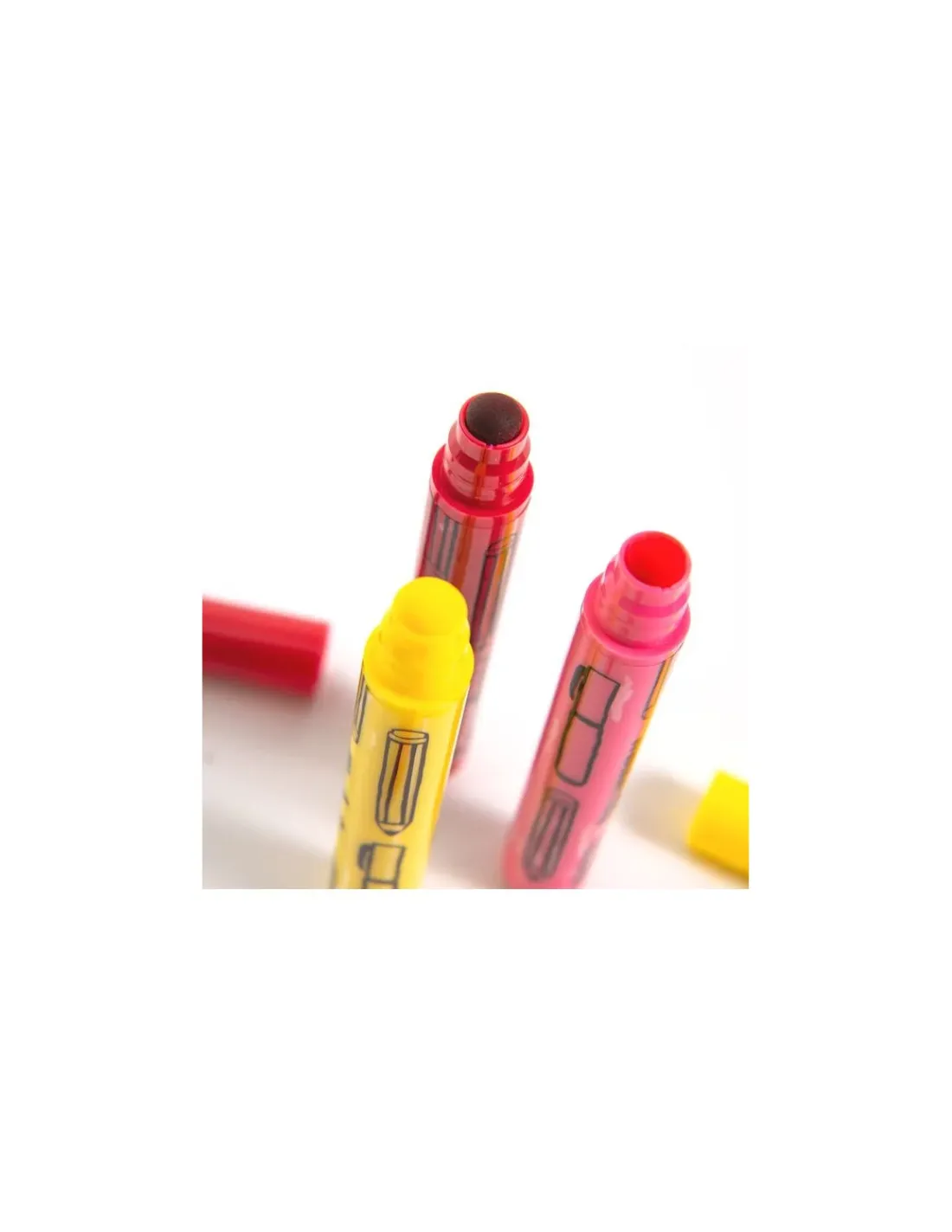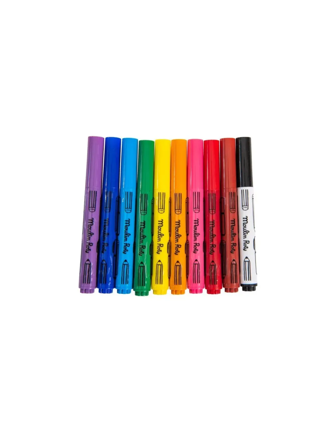 Découvrez la pochette Mes 10 premiers feutres de la collection Les Popipop de Moulin Roty, des feutres lavables avec une pointe arrondie qui ne s’enfonce pas, idéal pour les enfants dès 3 ans.