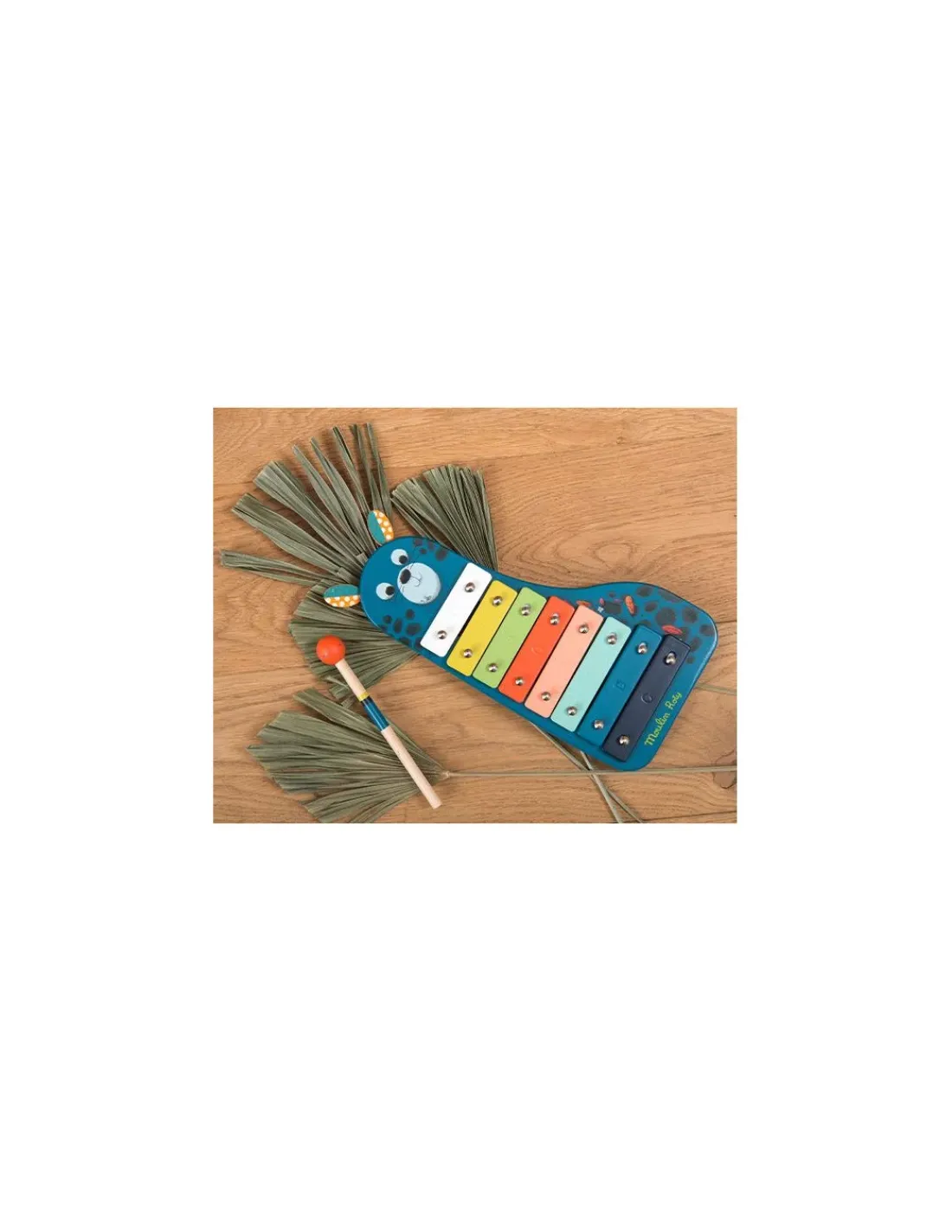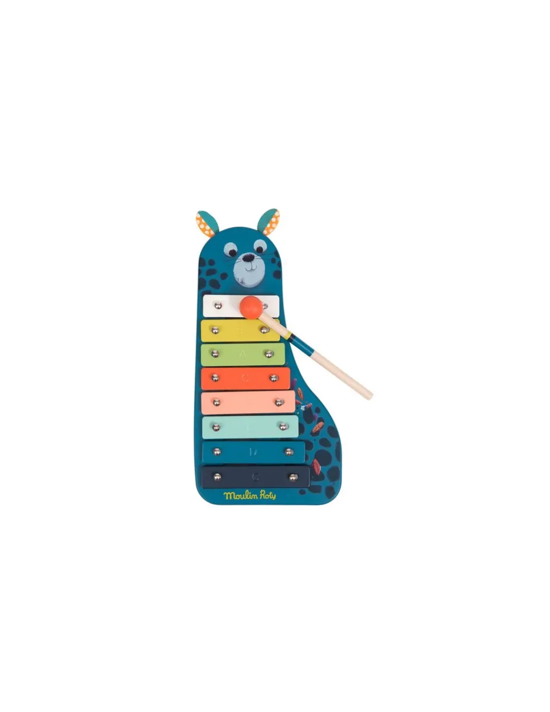 Découvrez le métallophone Dans la jungle de Moulin Roty, un magnifique instrument de musique très coloré et graphique pour les enfants dès 1 an, permettant de composer de véritables chansons. Pour futurs musiciens, métallophone multicolore à 8 tons avec mailloche. Son socle bois aux formes arrondies est illustré de Zimba la panthère avec deux oreilles en feutrine. Développe le rythme, la motricité et l’éveil musical des tout-petits