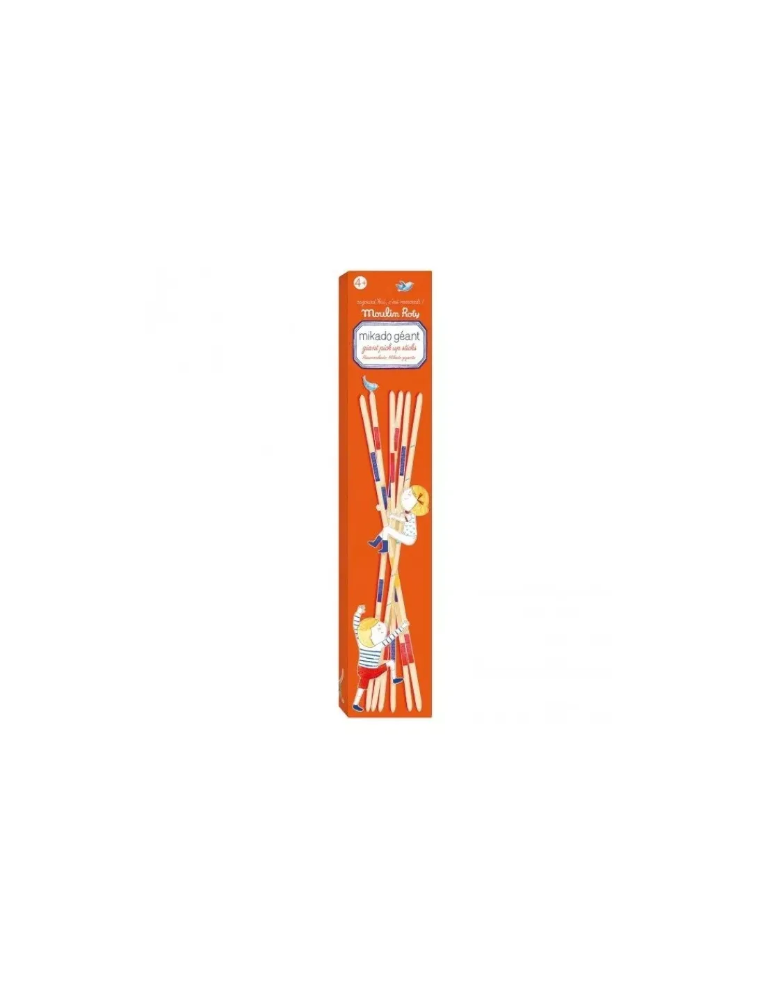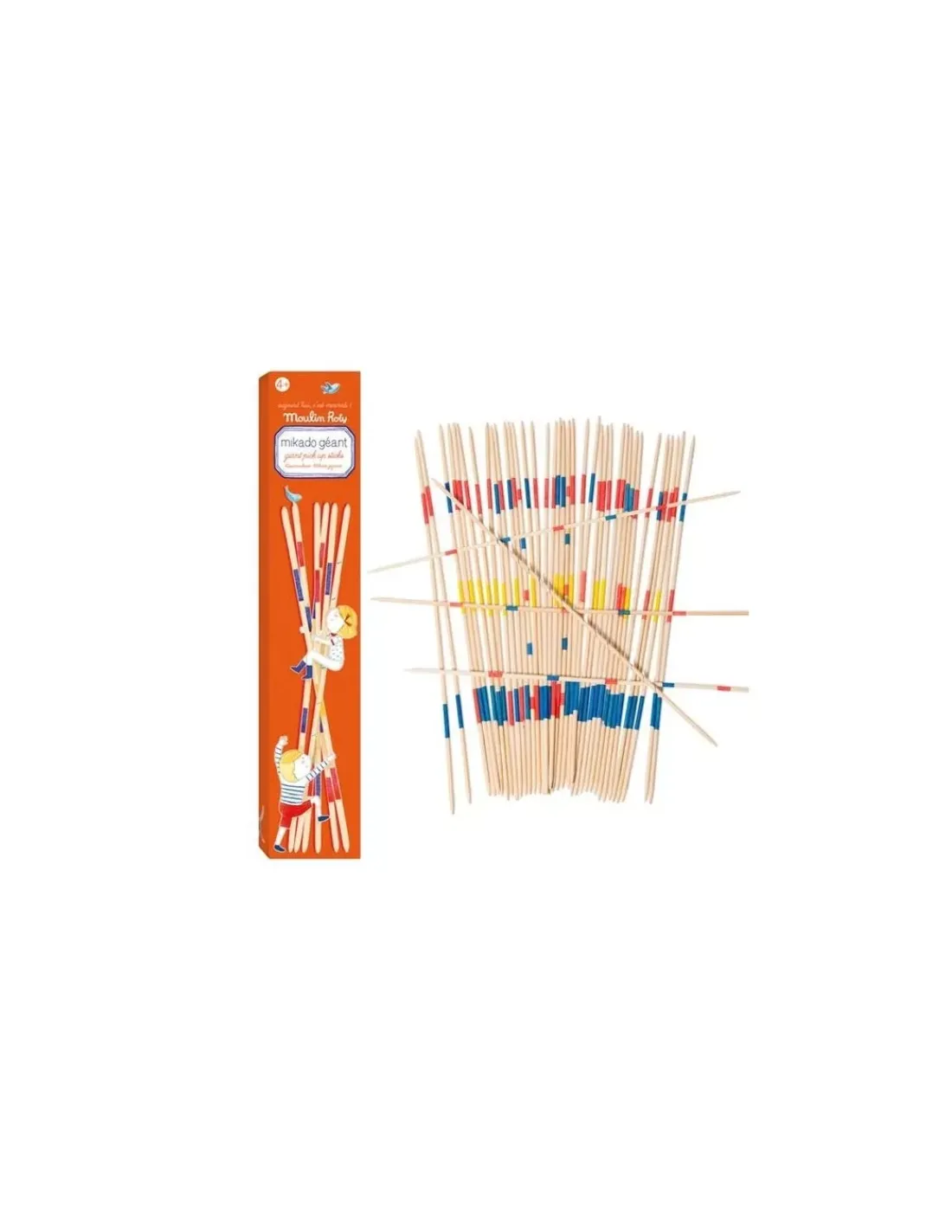 Découvrez la boite de Mikado géant de la collection Aujourd’hui c’est mercredi de Moulin Roty, des baguettes de bois de 50 cm avec des couleurs pour jouer en famille et tester sa dextérité et sa précision.
