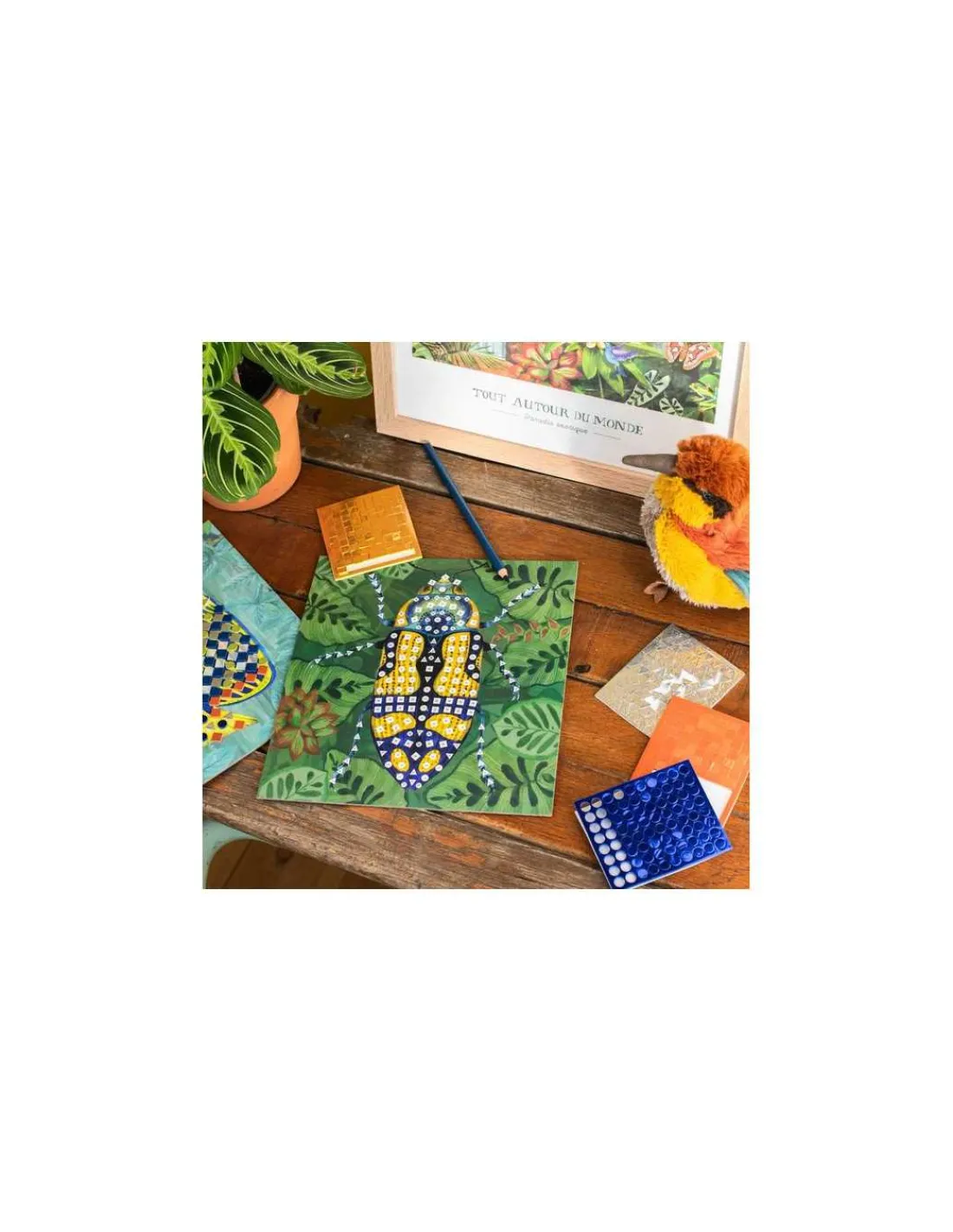 Découvrez le coffret Mosaïques de la collection Tout autour du monde de Moulin Roty, une activité créative pour les enfants dès 5 ans.