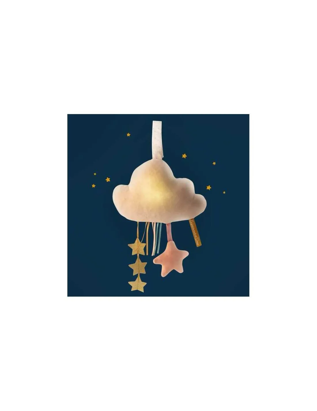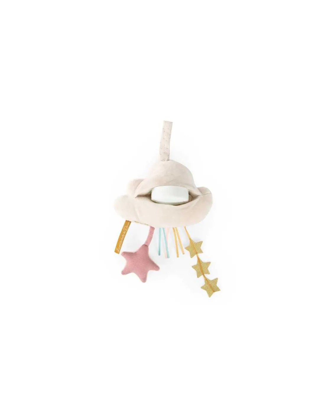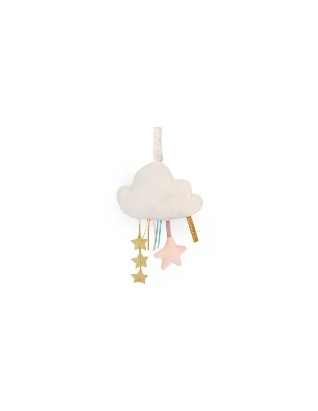 Facile à installer grâce à son lien d’attache, ce joli nuage possède des rubans et des étoiles qui éveilleront la curiosité de votre enfant. Bébé pourra s’amuser à les attraper stimulant ainsi ses sens.