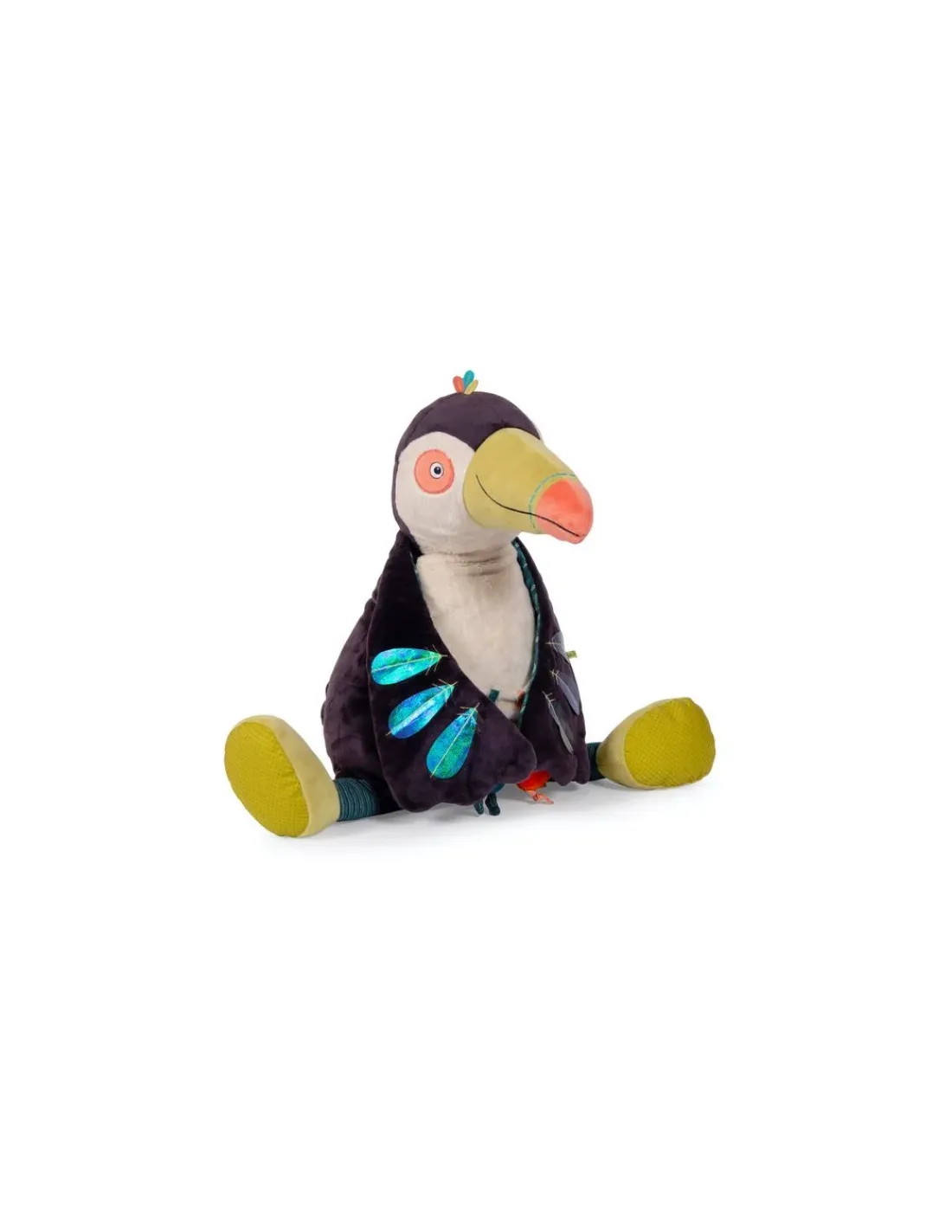 Découvrez Pakou le toucan géant d’activités de la collection Dans le Jungle de Moulin Roty, une peluche d’activités en forme d’oiseau très rigolo, parfait pour éveiller bébé dès leurs premiers mois.
