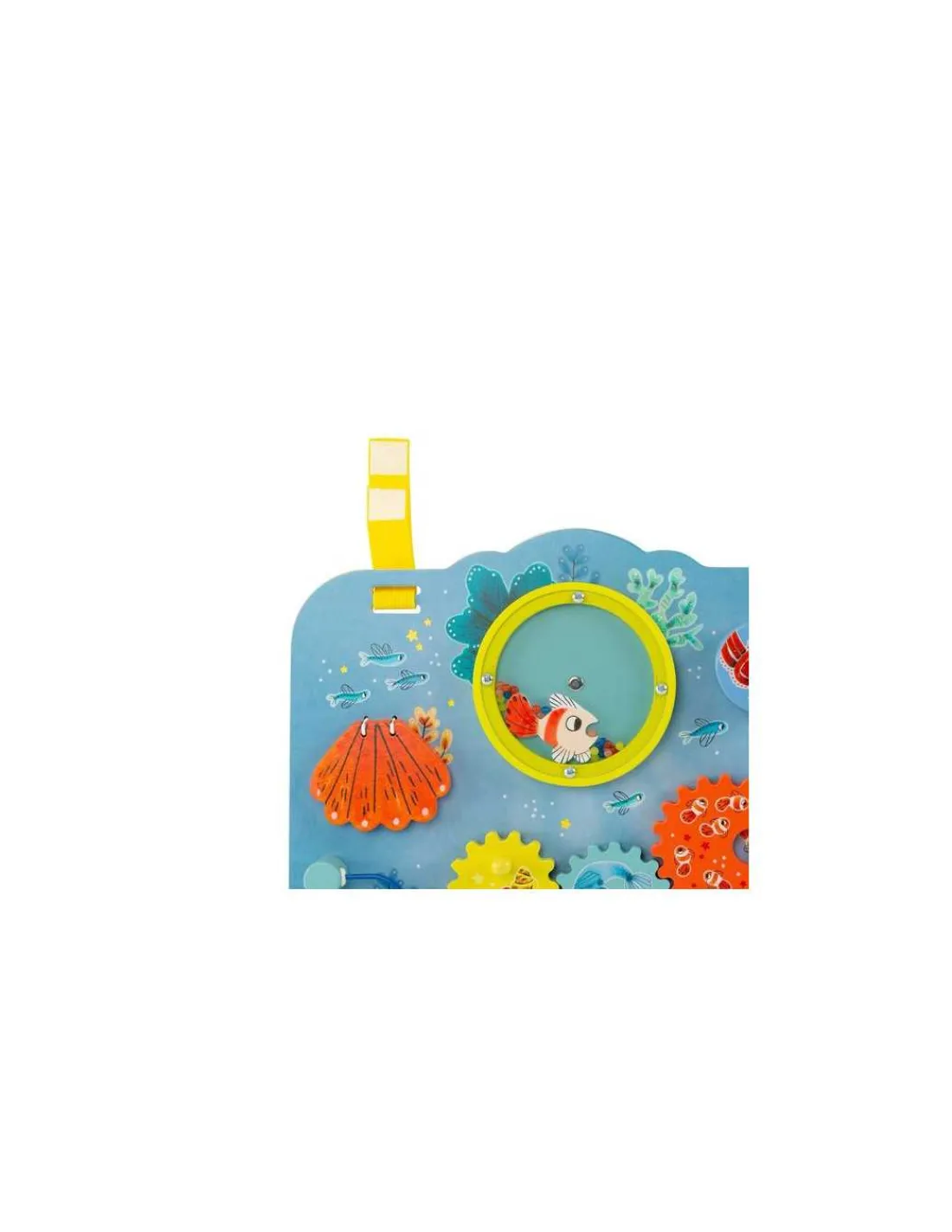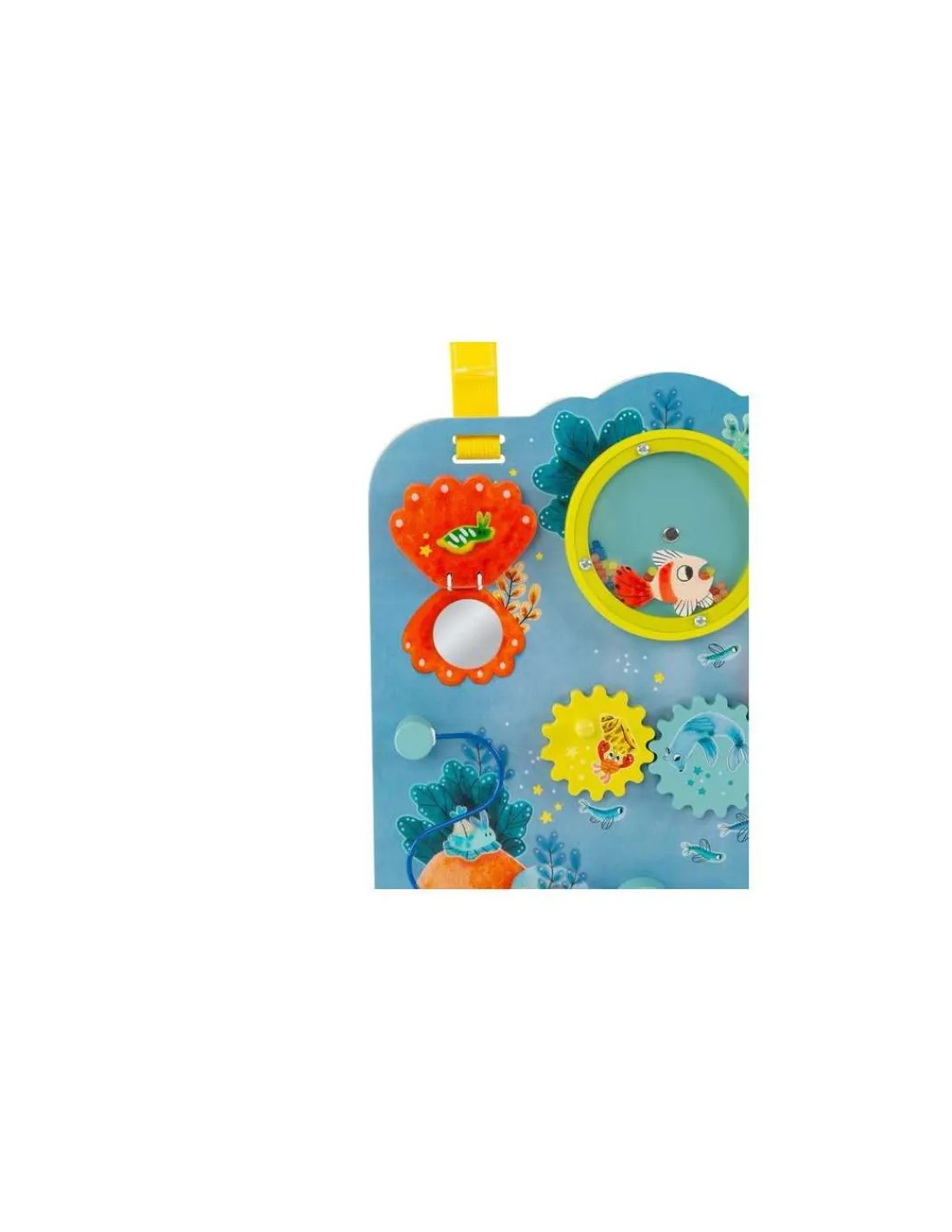 Votre tout-petit pourra s’amuser avec les roues dentées à faire tourner, un labyrinthe coulissant, un boulier, un tourbillon de billes… Il dispose de scratch pour s’accrocher afin de le mettre à la portée de votre enfant où vous le souhaitez.