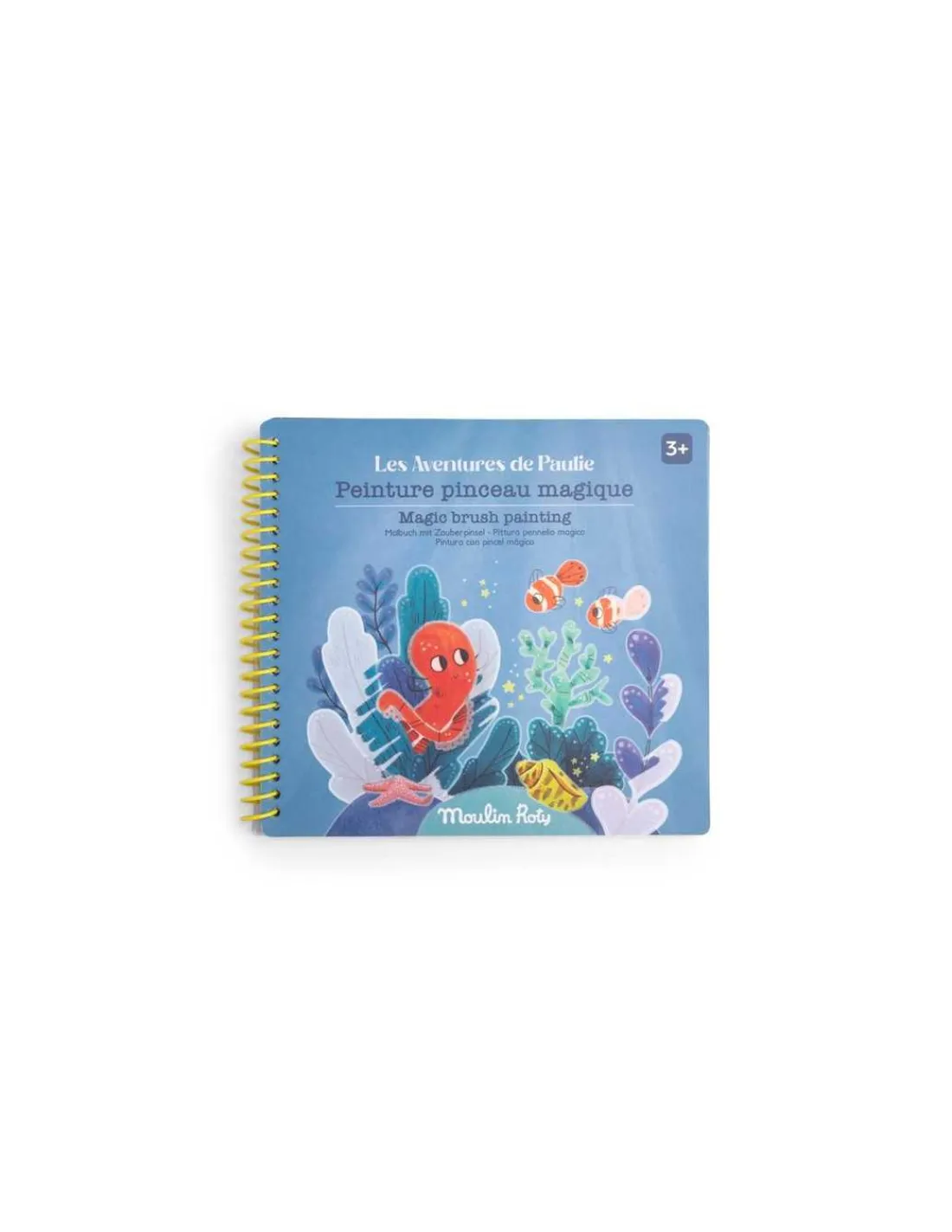 Découvrez le cahier à spirale Peinture pinceau magique de la collection Les aventures de Paulie de Moulin Roty, une activité ludique pour les enfants à partir de 3 ans.