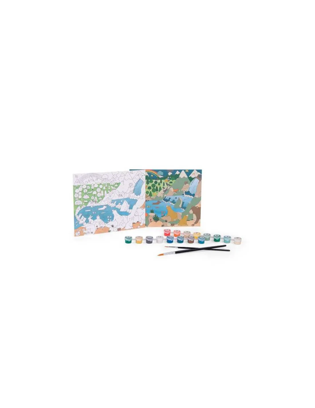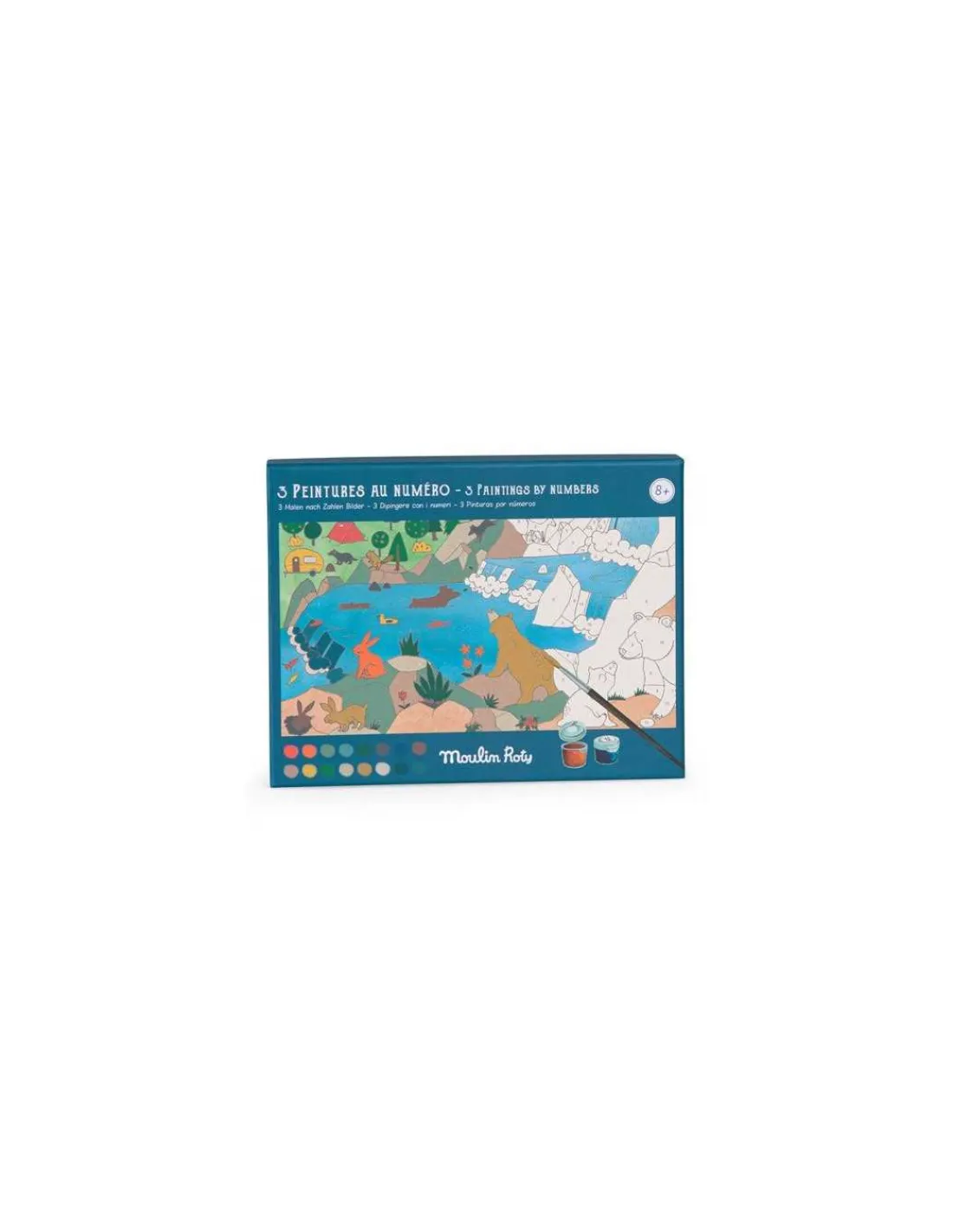 Laisse-toi guider par les numéros dans chaque case qui t’indique la couleur de peinture à utiliser et regarde ton image prendre vie à chaque ajout de couleur. Ce coffret contient 3 images (22x18cm) à peindre sur le thème du monde et leur modèle, 2 pinceaux et 16 pots.