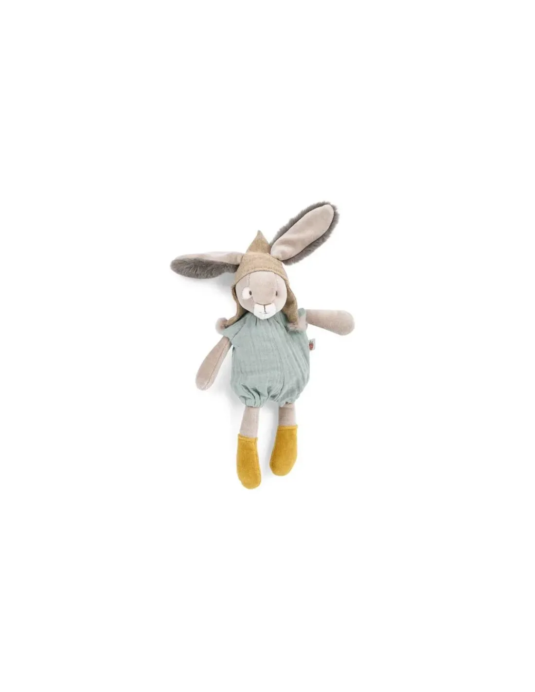 Découvrez le petit lapin sauge de la collection Trois Petits Lapins de Moulin Roty, un doudou de 30 cm avec de longues pattes et de longues oreilles à attraper pour de tendres instants câlins.