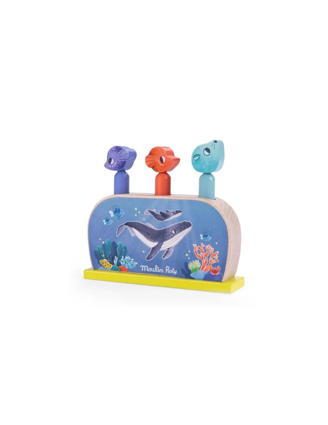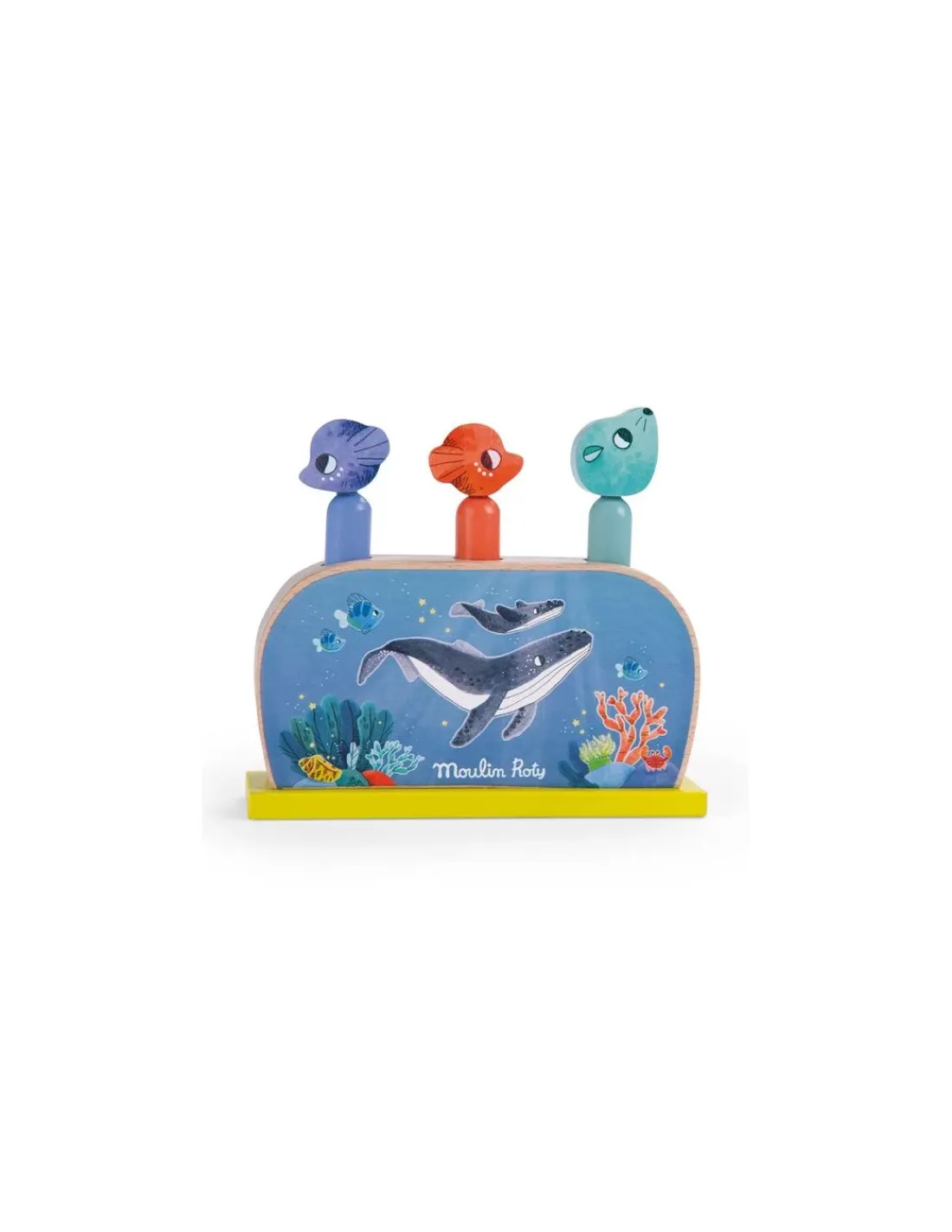 Découvrez le Pop up de la collection Les aventures de Paulie de Moulin Roty, un jouet d’éveil en bois aux couleurs de l’océan pour amuser les enfants dès 12 mois.