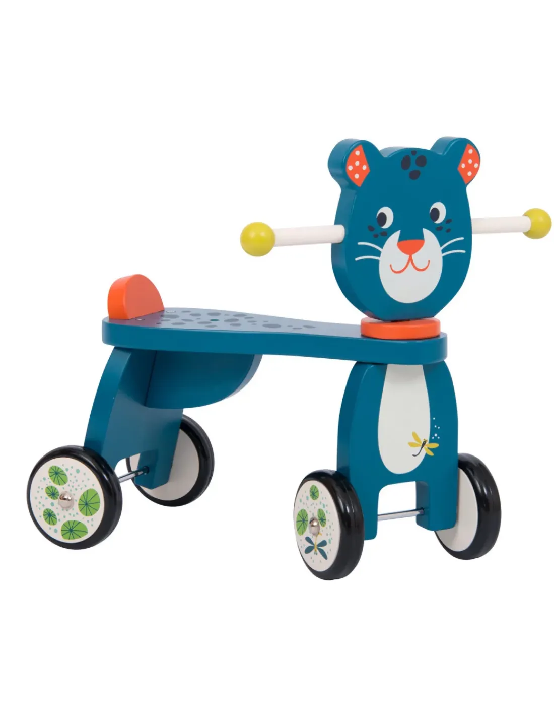 Découvrez le porteur panthère de la collection Dans la jungle de Moulin Roty, un porteur en bois massif pour les enfants à partir de 12 mois. Porteur en bois Zimba la panthère pour rouler comme au milieu de la jungle! L’enfant à partir d’un an pourra se déplacer facilement, tout en développant son équilibre et sa motricité.