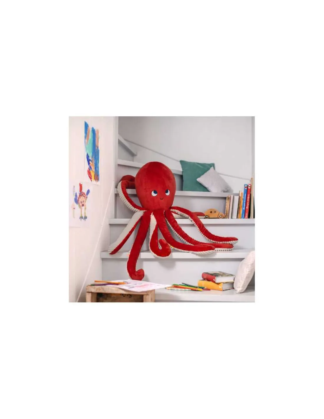 Découvrez le poulpe géant de la collection Les aventures de Paulie de Moulin Roty, une peluche géante de 80 cm représentant Paulie le poulpe. Un cadeau de naissance parfait pour décorer la chambre et amuser votre bébé lorsqu’il aura grandit.