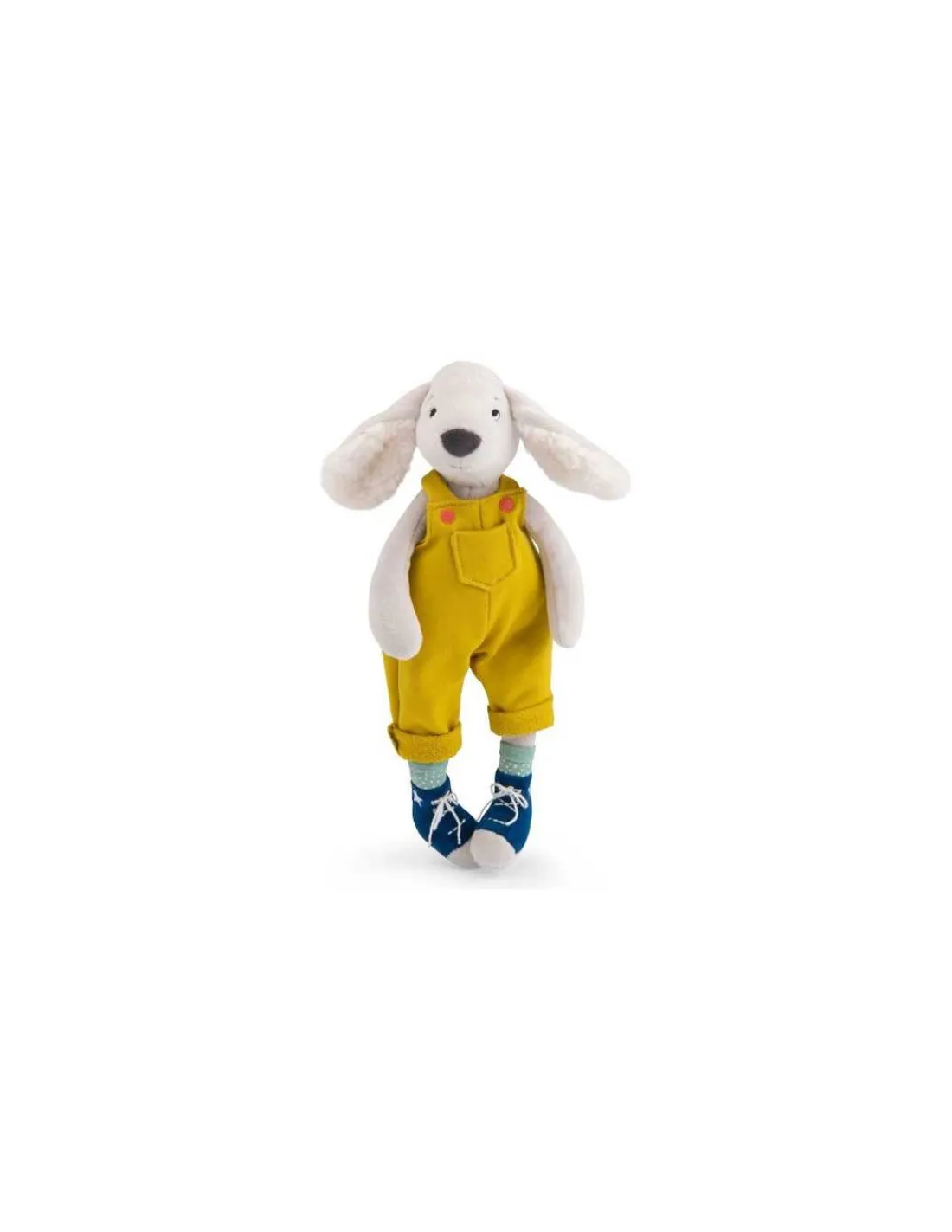 Vêtu d’une salopette tachetée et de chaussettes à pois Pilou est le copain parfait pour des moments tout en douceur.