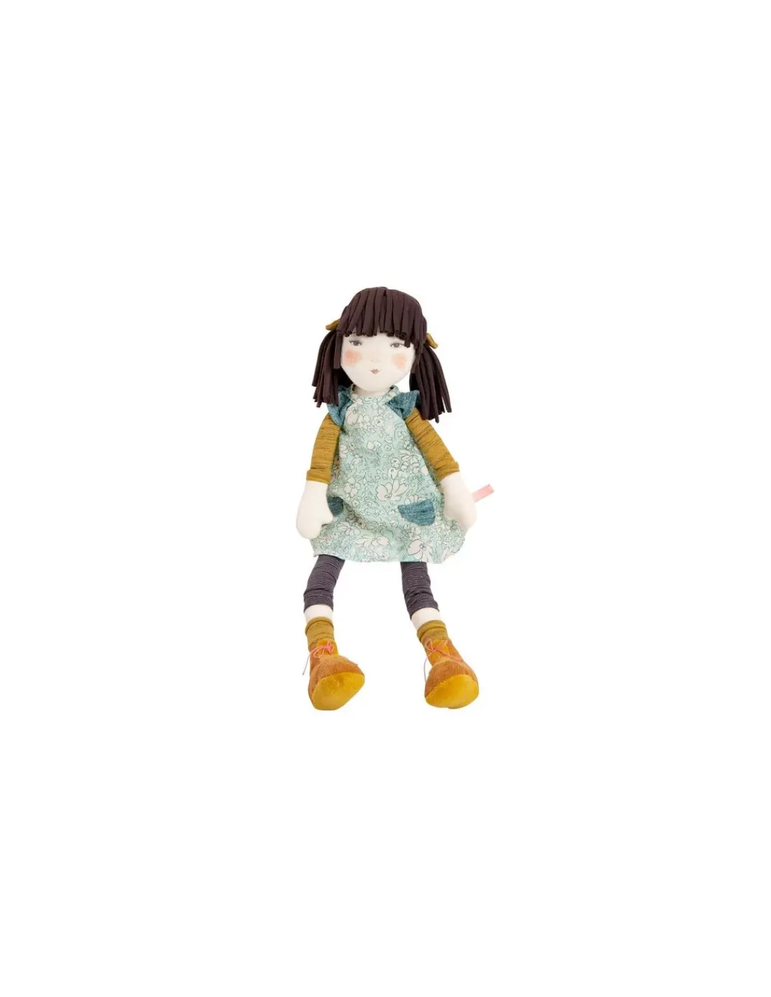 Découvrez la grande poupée Iris de la collection Les Rosalies de Moulin Roty, une adorable poupée de chiffon au doux visage illustré et imprimé, avec de longs cheveux en jersey rouleauté noués en couettes. Elle est chaussée de bottines à lacets et vêtue d’une robe fleurie avec poches et legging tissés de fil cuivré.