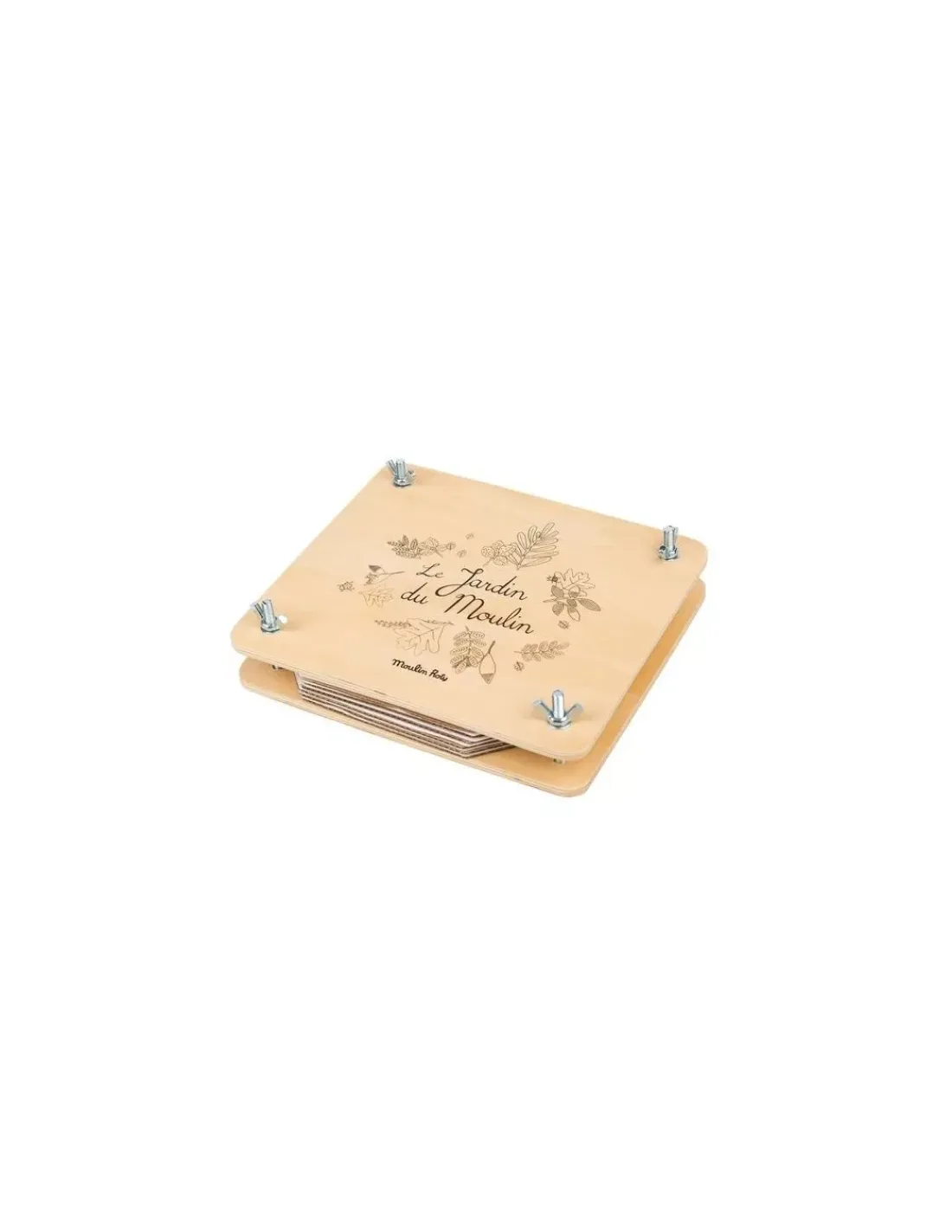 Découvrez la presse à fleurs de la collection Le jardin du Moulin de Moulin Roty, une activité ludique pour les botanistes en herbe qui feront sécher des fleurs.