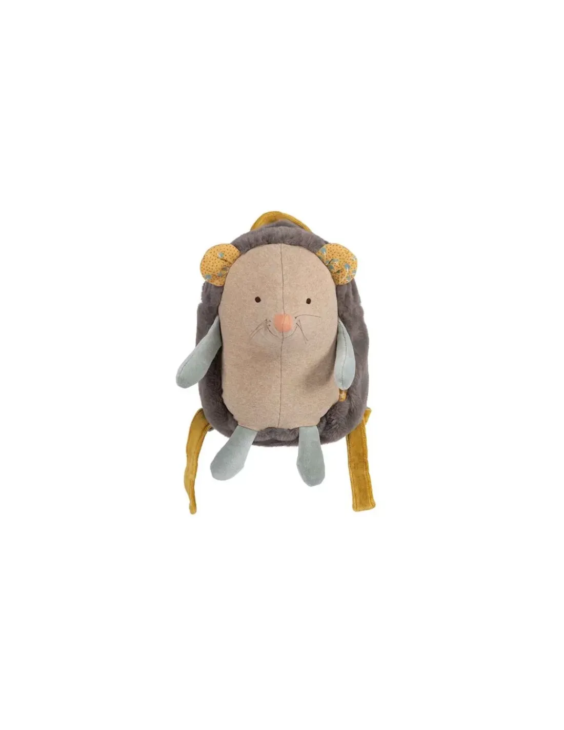 Découvrez le sac à dos hérisson de la collection Trois Petits Lapins de Moulin Roty, un sac en tissu tout doux qui accompagnera votre bébé en balade, chez la nounou ou à la crèche.