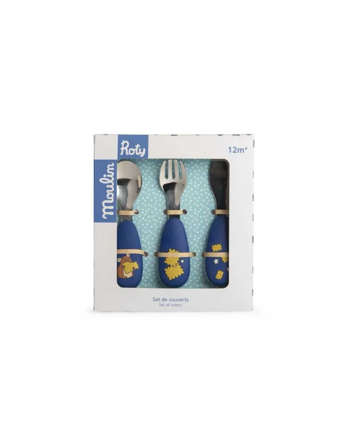 Ce set comprend trois couverts en inox et silicone, spécialement conçus pour offrir une prise en main facile et confortable, permettant ainsi aux tout-petits de manger comme les grands. Le set contient une cuillère, une fourchette et un couteau à bout rond, parfaitement adaptés aux petites mains. Chaque couvert est joliment illustré aux couleurs de la collection Puce et Pilou.