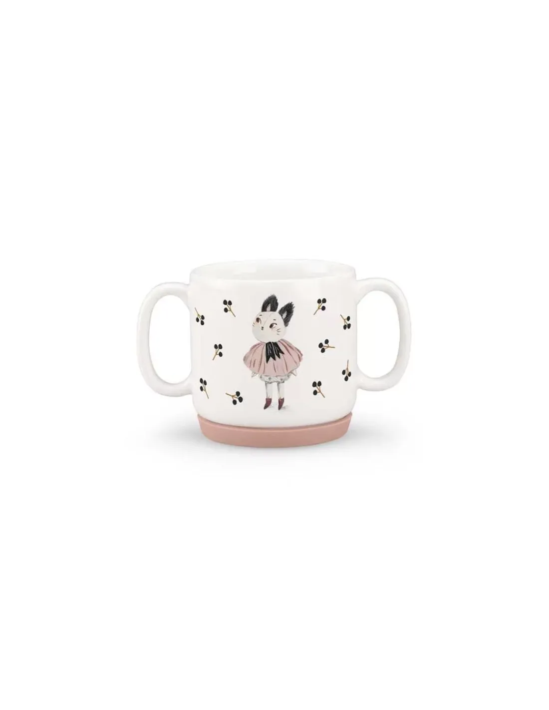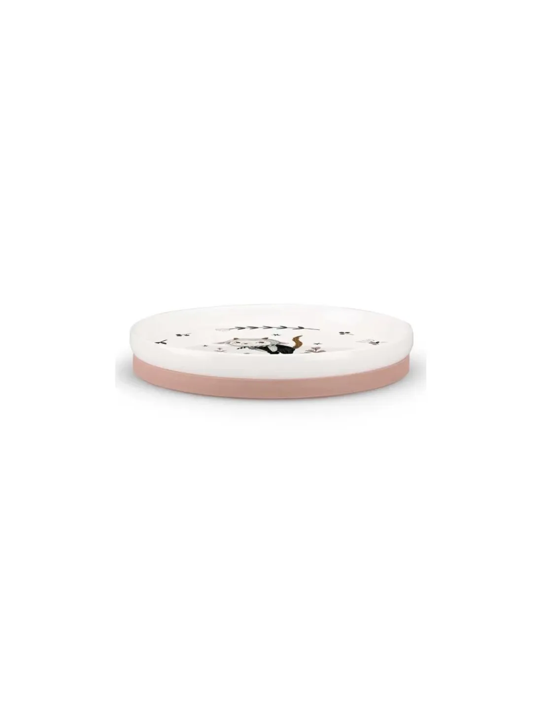 Le set comprend un bol, une tasse à anses et une assiette avec chaussette antidérapante en silicone amovible qui adhère sur les surfaces lisses et empêche de glisser.