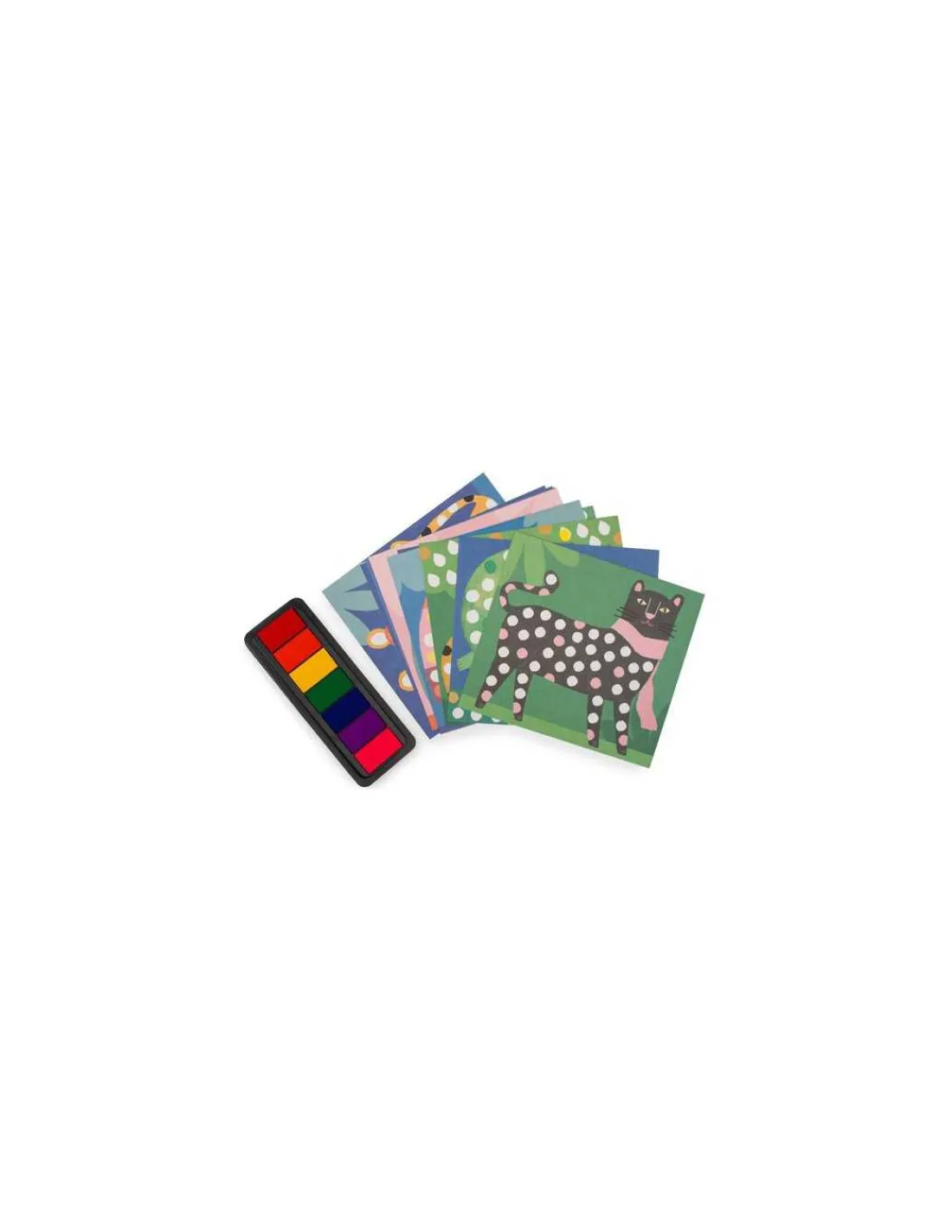 Une manière ludique et sensorielle de s’exprimer avec les doigts! Utilisez le tampon encreur à 7 couleurs pour peindre les 10 illustrations issues de la collection les Toupitis, avec les doigts.