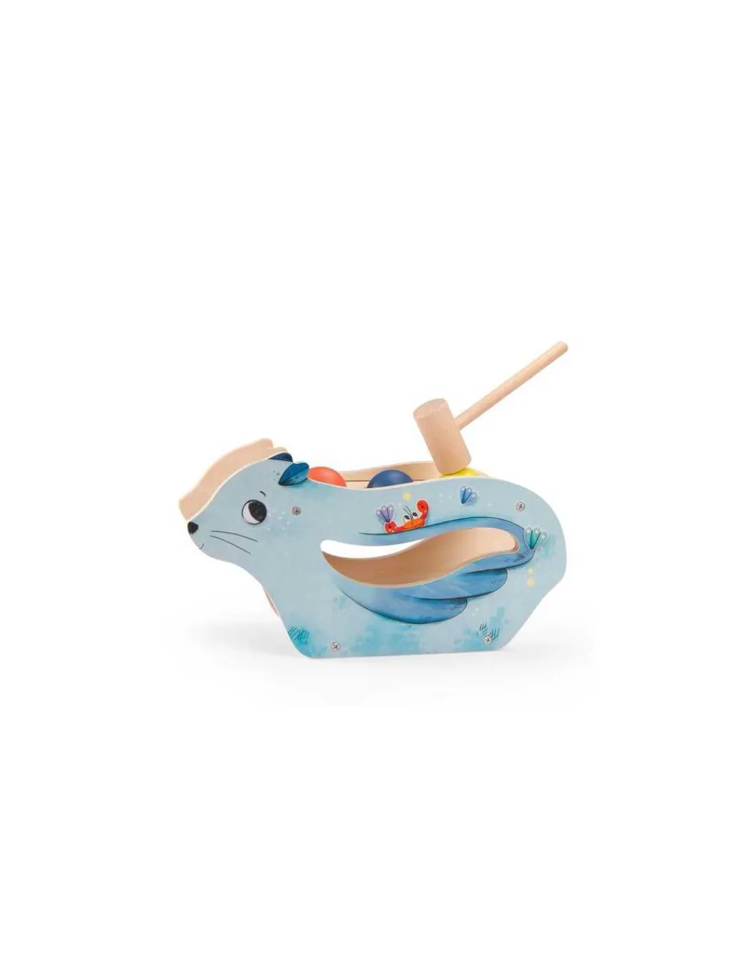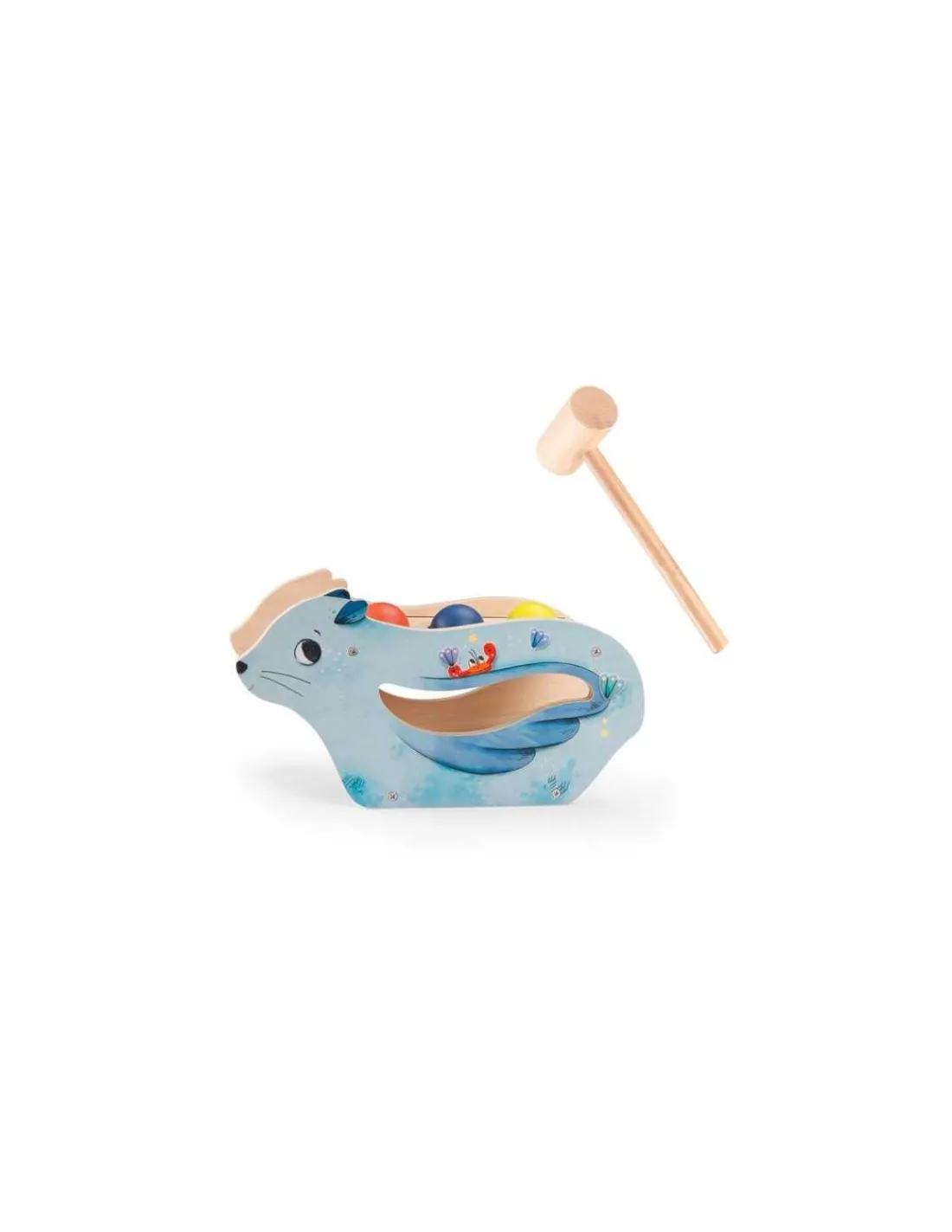 En avant la musique avec l’adorable Otarie! À l’aide du petit marteau, bébé s’amusera à frapper les boules colorées. Chaque boule tombant sur le métallophone déclenchera une mélodie douce et enchanteresse. Pratique et ludique, le métallophone est amovible pour permettre à votre enfant de jouer partout.
