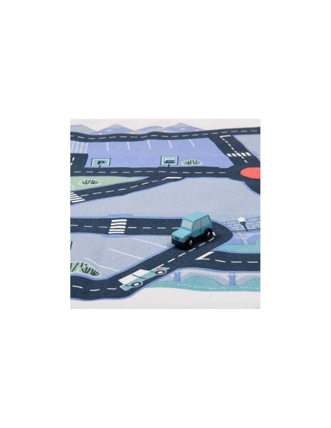 Parfait pour les passionnés de petites voitures et de courses endiablées, ce tapis offre un terrain de jeu dynamique avec ses routes sinueuses et ses paysages variés. Préparez-vous à des courses survoltées alors que vos petits pilotes font rugir leurs bolides sur ce tapis 100% coton résistant et antidérapant.