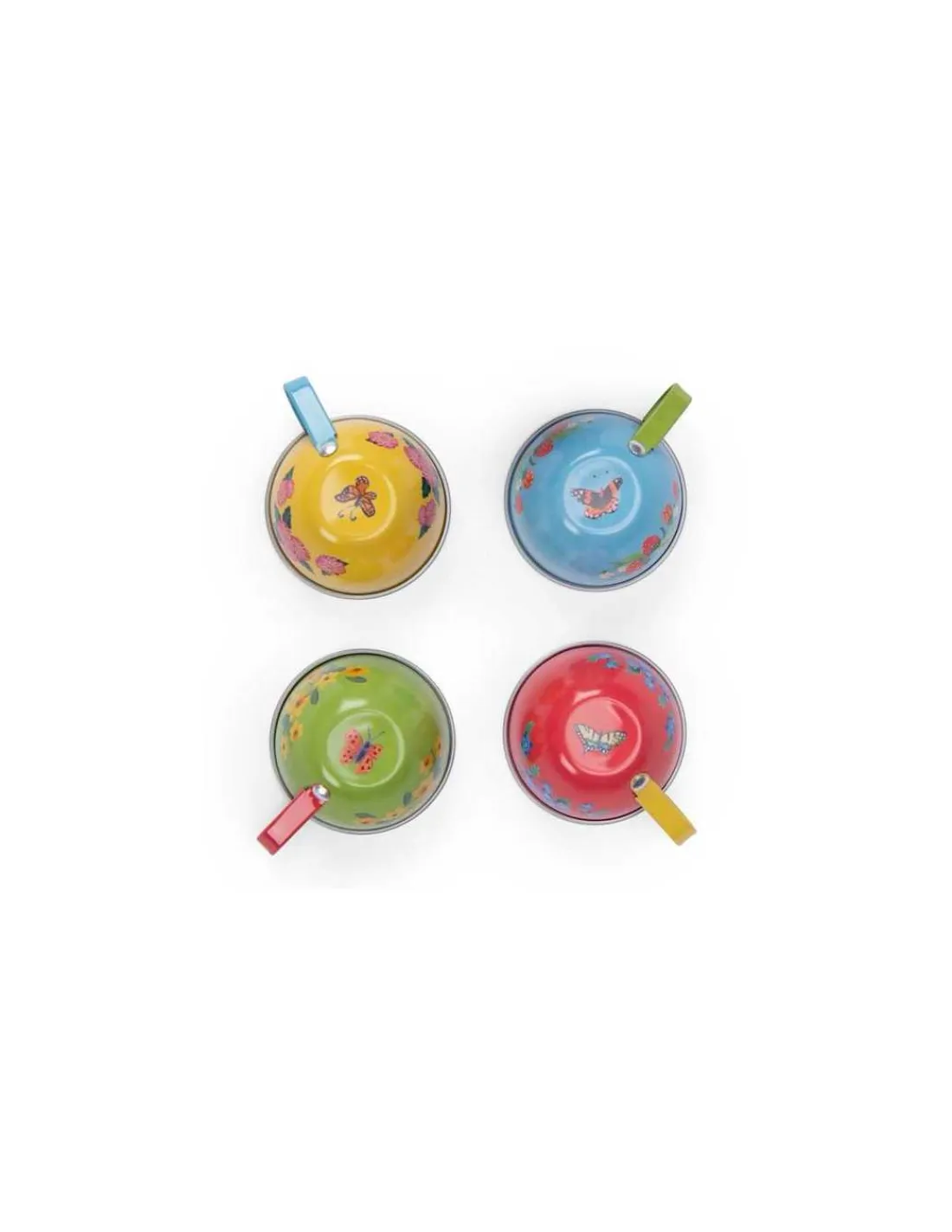 Une valise service à thé en métal aux couleurs printanières, joliment illustrée sur le thème du pique-nique par Camille Jourdy. Elle comprend un plateau, une théière, quatre assiettes à dessert, quatre tasses et leurs soucoupes assorties.