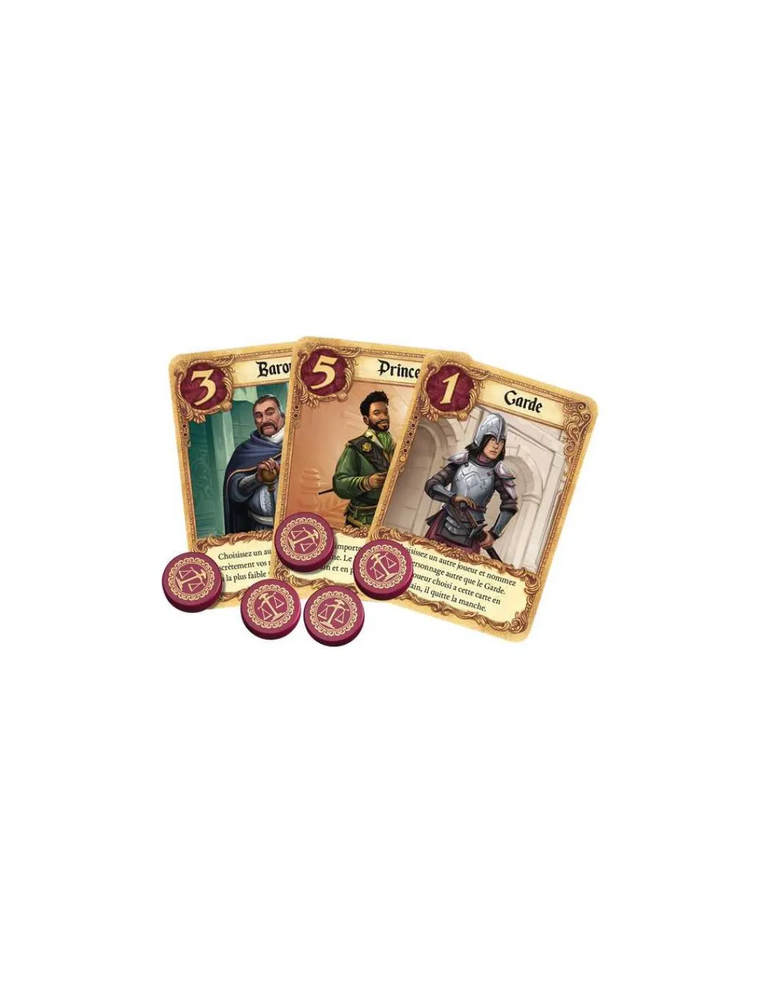 Rivalisez avec les autres galants pour que vos missives soient livrées à la Princesse. Vous dépendez d’intermédiaires pour livrer votre message. Durant la partie, vous possédez une carte en main que vous gardez secrète. A chaque début de tour, piochez une nouvelle carte. Jouez l’une de vos deux cartes et appliquez son pouvoir. Gardez l’autre, il s’agit de la personne qui tient votre billet doux. Vous devez vous assurer qu’à la fin de la manche vous possédiez la carte dont la valeur est la plus élevée.