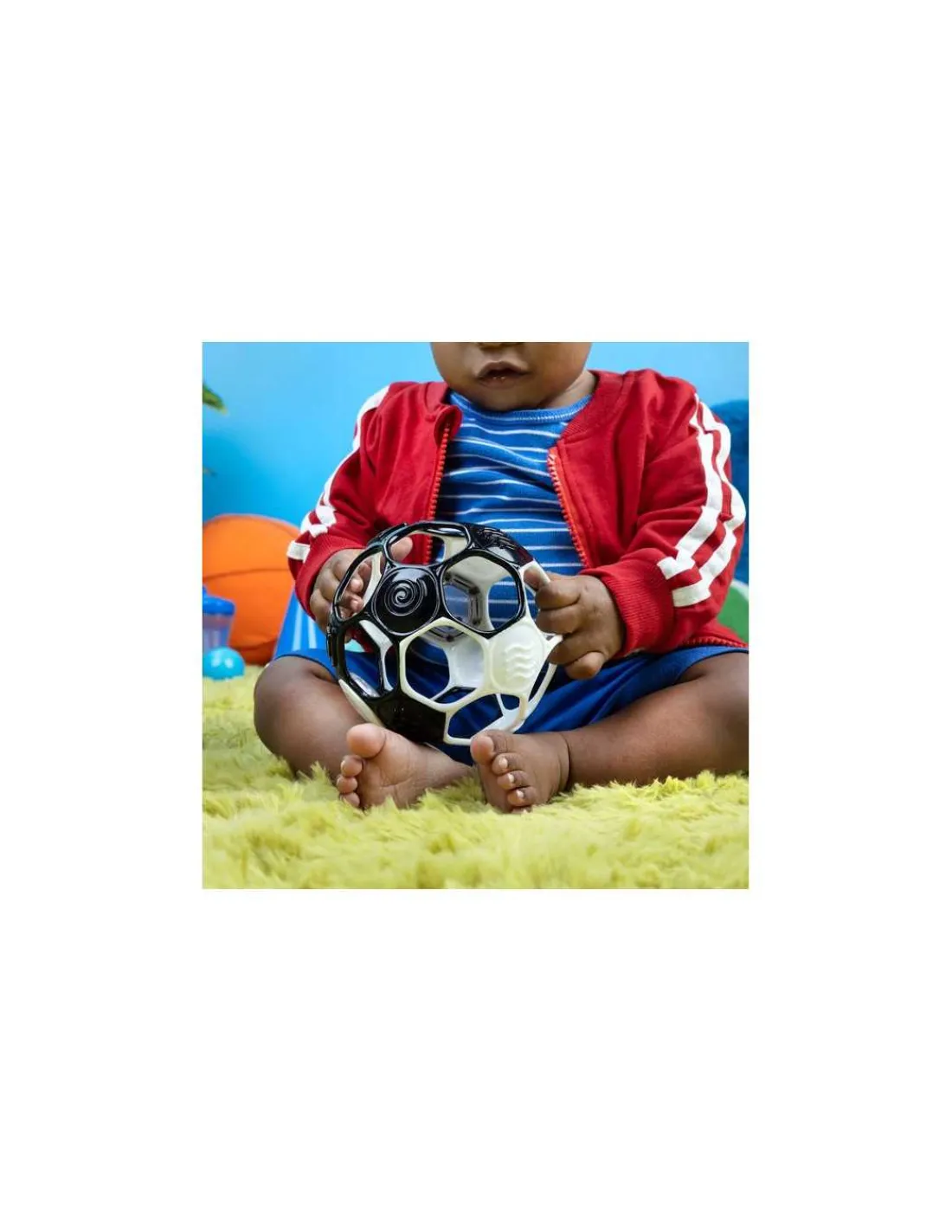 Découvrez la balle sensorielle noir et blanc de Oball, le hochet conçu pour éveiller les sens et développer la motricité fine des bébés dès la naissance. Un jouet d’éveil en forme de ballon de football pour les garçons et les filles.