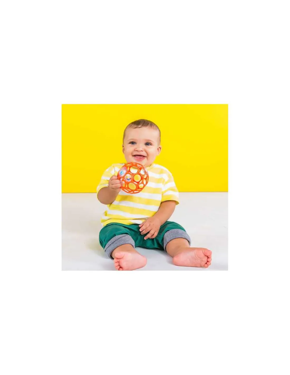 En manipulant, mordillant ou lançant la balle, bébé développe sa préhension et sa motricité tout en s’amusant à écouter le doux cliquetis des billes. Fabriquée en plastique lisse et flexible, la balle Oball est à la fois pliable et résistante : elle reprend toujours sa forme initiale, pour des heures de jeu sans fin.