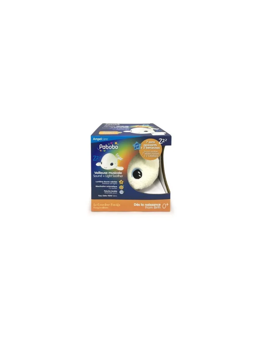 Découvrez la peluche veilleuse avec sons apaisants de Pabobo, une peluche douce en forme de baleine, qui viendra apaiser et réconforter bébé dès ses premiers mois.